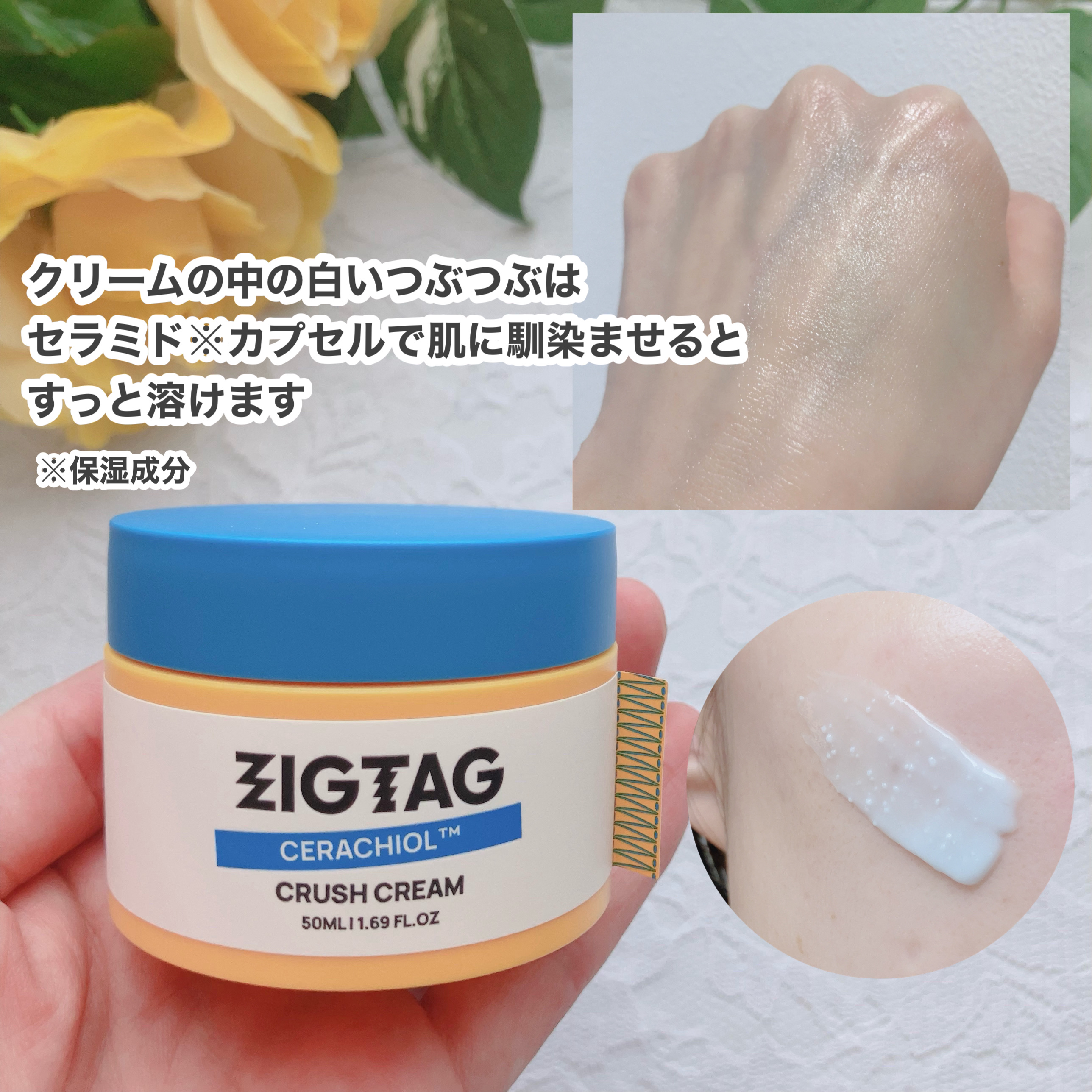 ZIGTAGCerachiol(Ceramide+Bakuchiol)CrushCream毛穴やハリ感だけでなく、うるおい※1ケアにも嬉しいクリームです✨とろけるセラミド※2カプセルと、なめらかに肌になじむバクチオール※3クリームの心地よいバ...