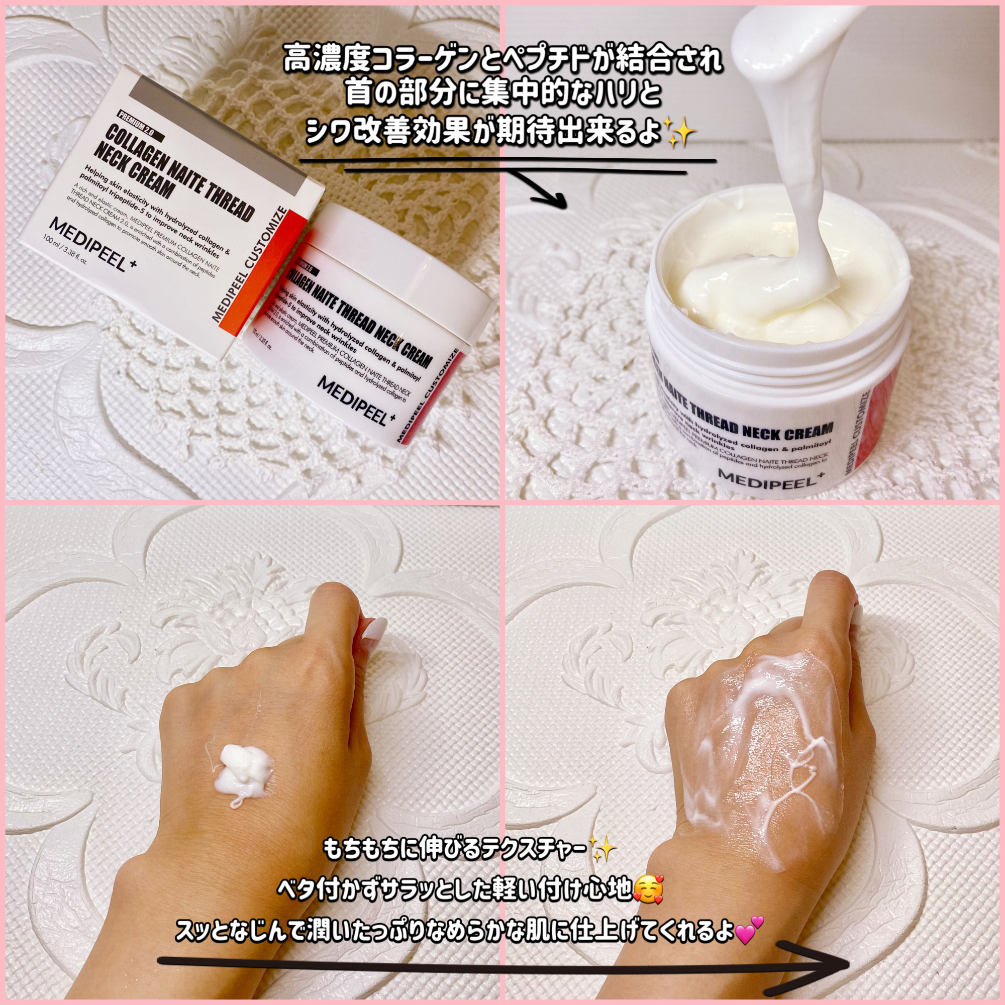 MEDIPEEL(@MedipeelJ)#PRプレミアムナイテスレッドネッククリーム2.0ねっとーーりしたクリームタイプとサラッとしたスティックタイプがあります!高濃縮コラーゲンとペプチド成分が結合されていて、首の部分に集中的なケアを🤲🏻✨夏...