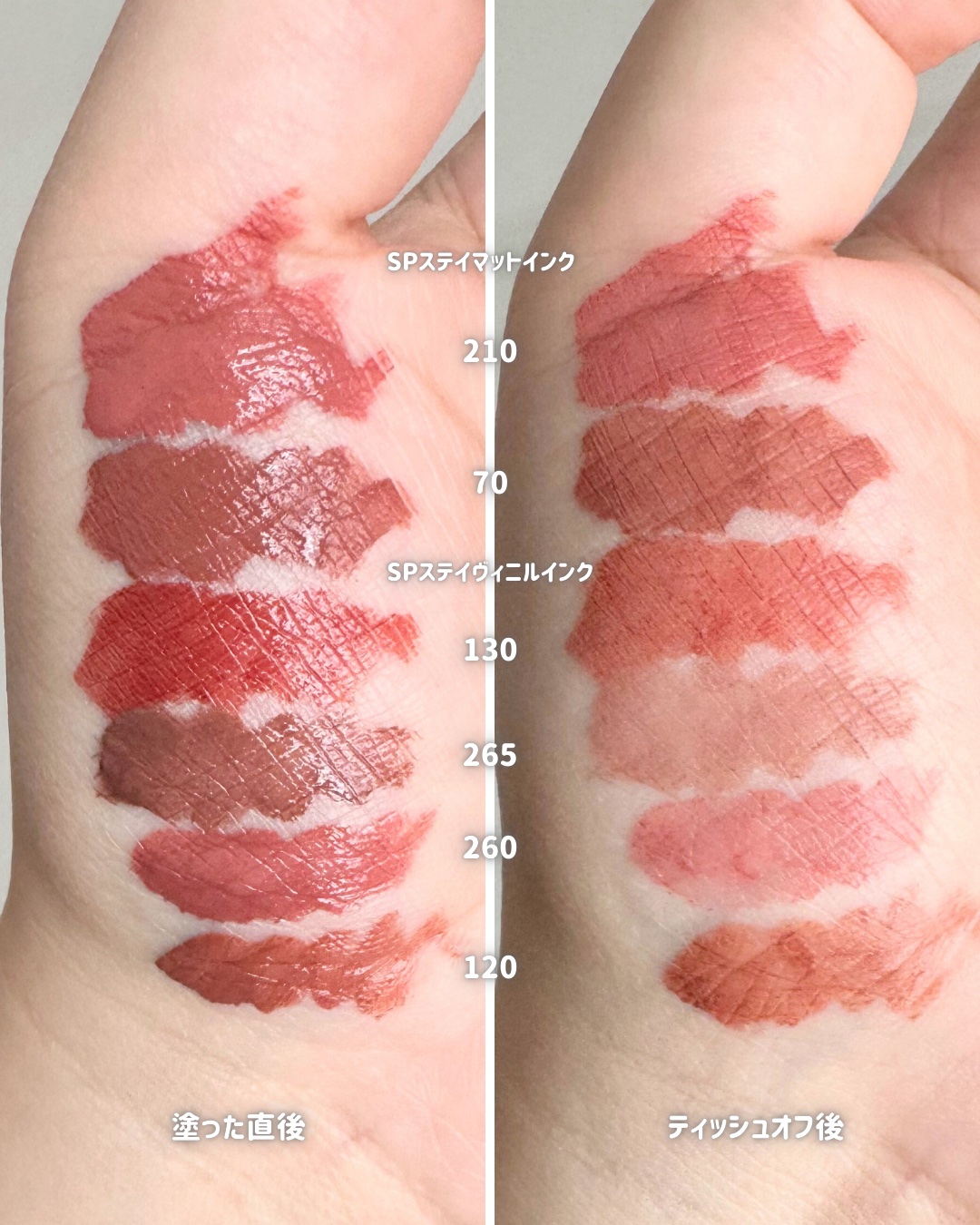 8色入って¥1,078円という、日系プチプラコスメの真骨頂! どのパーソナルカラーにも合う色が発売されているので、色みで悩んでる人が居たら参考にしてくれたら嬉しいです😌 マットタイプも含め大人気ですが、新色含めて購入したので全色レビューを撮りました📷