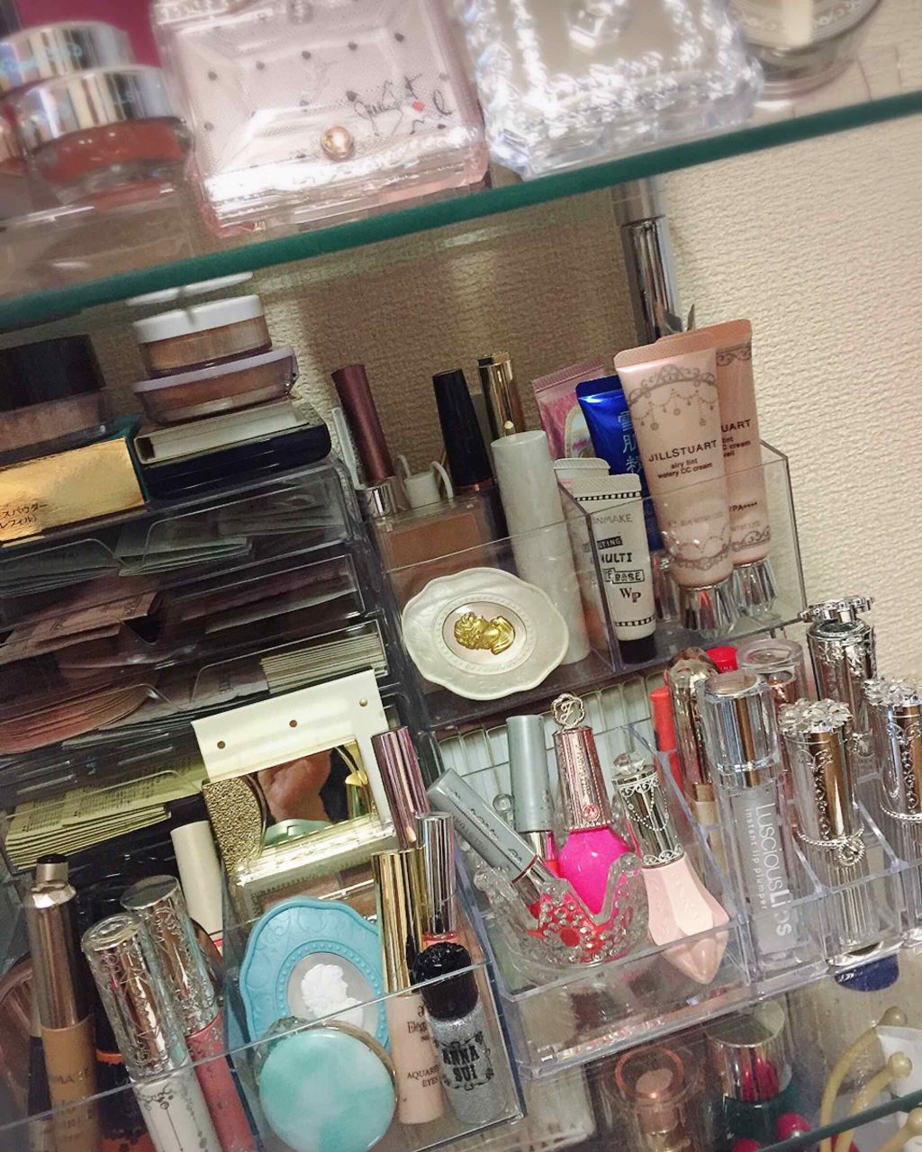 #コスメ収納#ダイソー#ジルスチュアート#可愛い私のコスメ収納とジルスチュアートとかのお気に入りコーナー💗✨収納とゆうかコスメはただダイソーのクリアケースに押し込んだだけ笑古い化粧品は処分したからあんまりないけど🙃もっと可愛くしたいけど使いや...