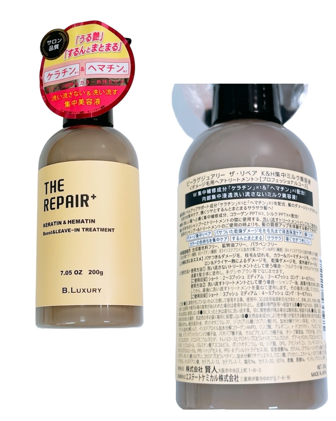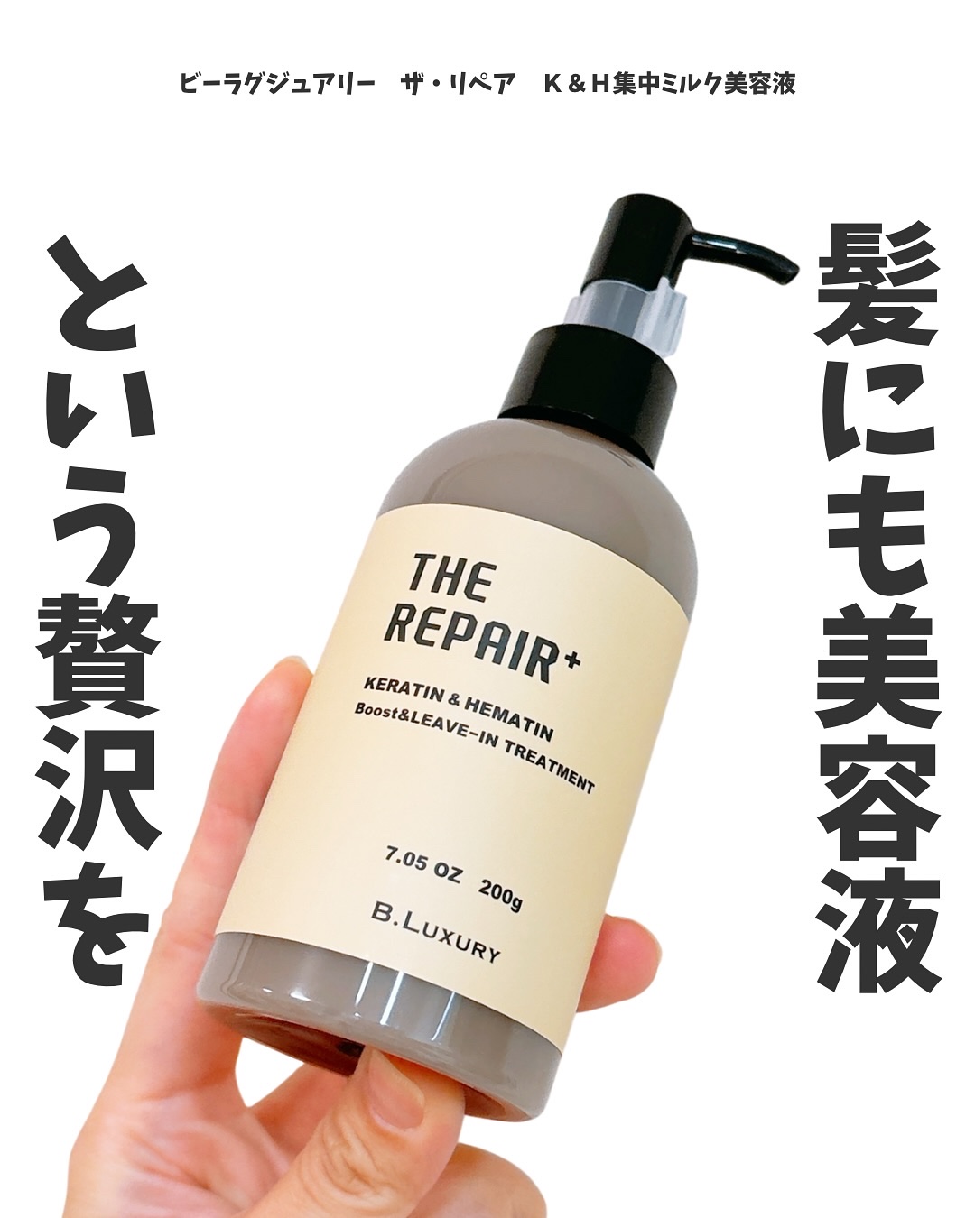 髪にも美容液を、という発想のミルク美容液✨【ビーラグジュアリー ザ・リペア K&H集中ミルク美容液】ヘアケアにはトリートメント、というイメージがあると思うんだけど、これは髪の美容液っ🤗ケラチン※1&ヘマチン※2配合の洗い流さない髪用の美容液な...