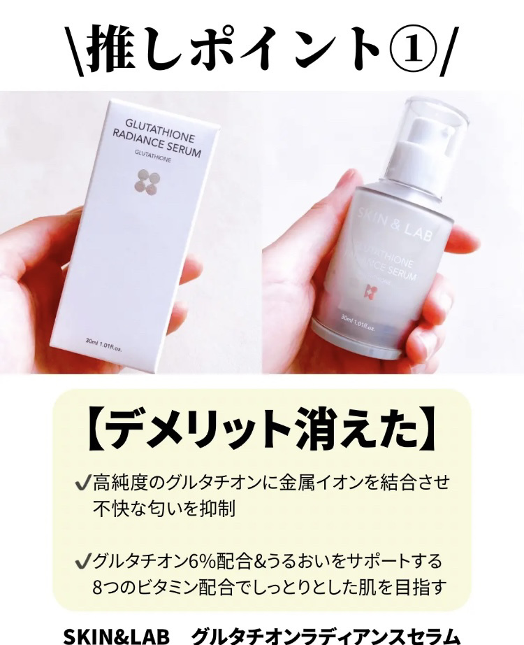 Qoo10メガ割で買うならコレ👆🏻🩶透明感と美白を叶える無臭グルタチ美容液.ᐟ 🔖.·SKIN&LABグルタチオンラディアンスセラム30ml通常2,790円→メガ割クーポンで2,232円 🩶 トナーと一緒に使うことでハリ・透明感がググッと🆙...