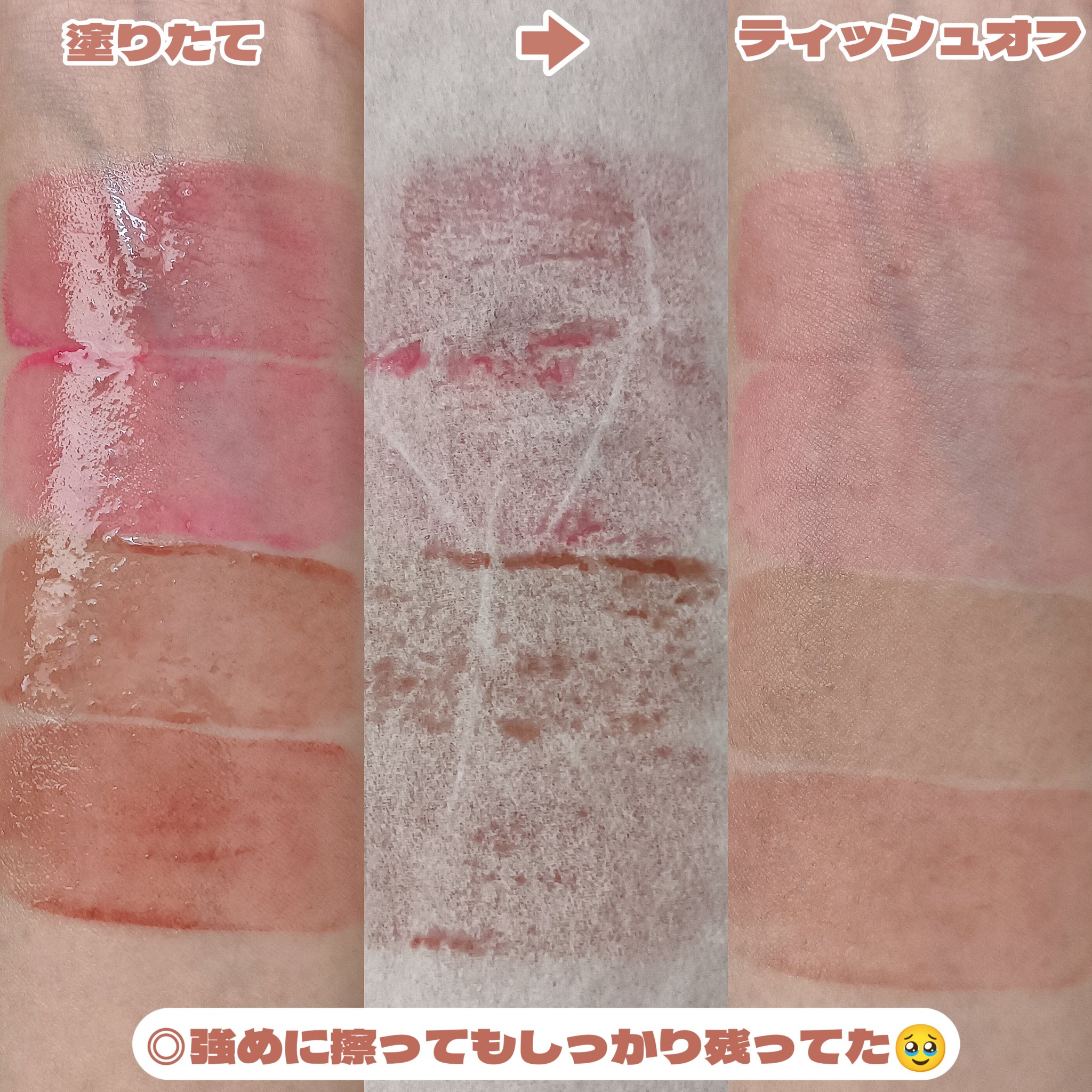 | リップティントランキング第3位 | 重ねて塗っても、ちゅるんと透け感が残って明るめカラーがとっても映える…💕色残りも◎ | 詳細を見る | ||