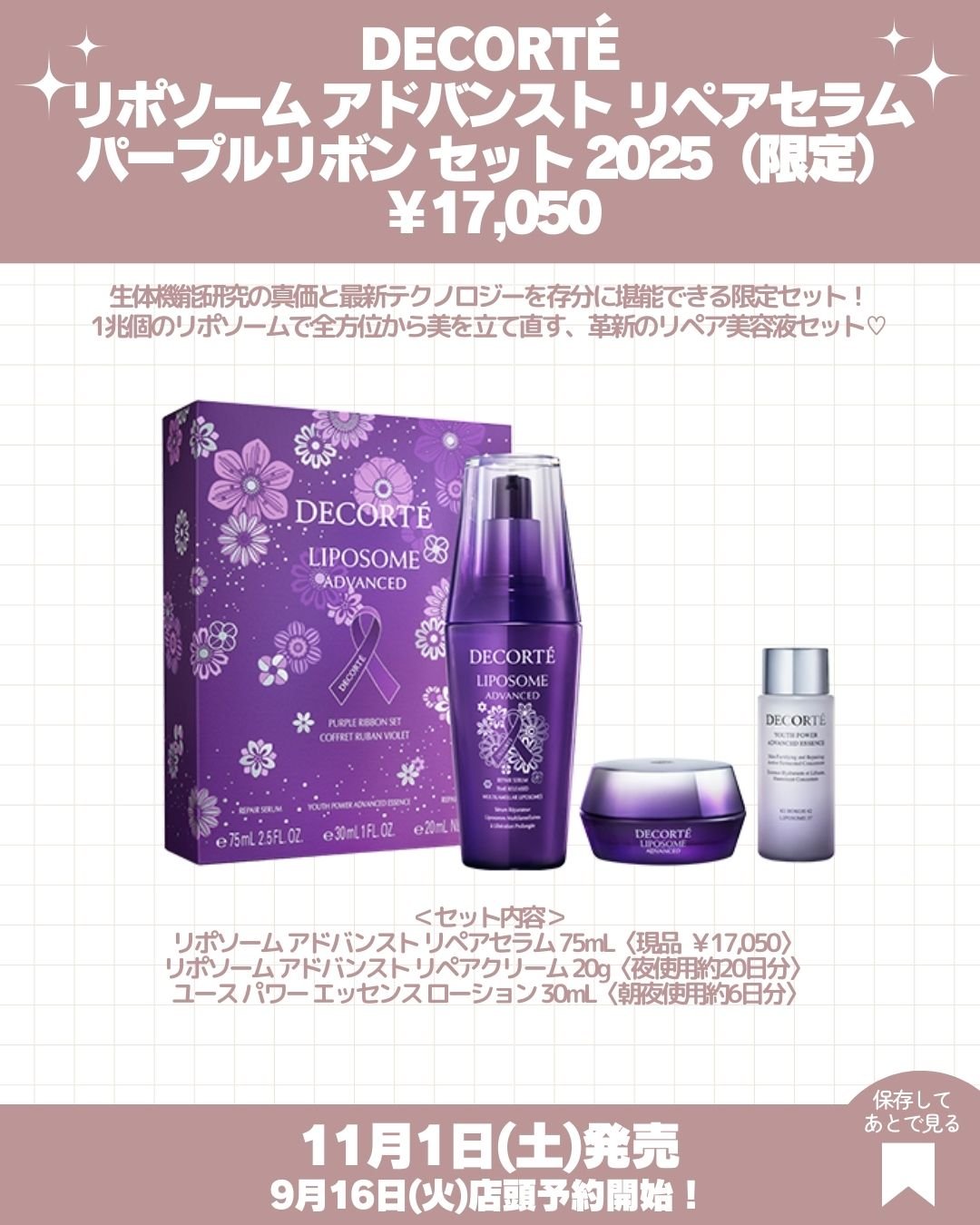 DECORTÉ コスメデコルテ リポソーム アドバンスト リペアクリーム パープルリボン セット 2025 | 11,550円 |