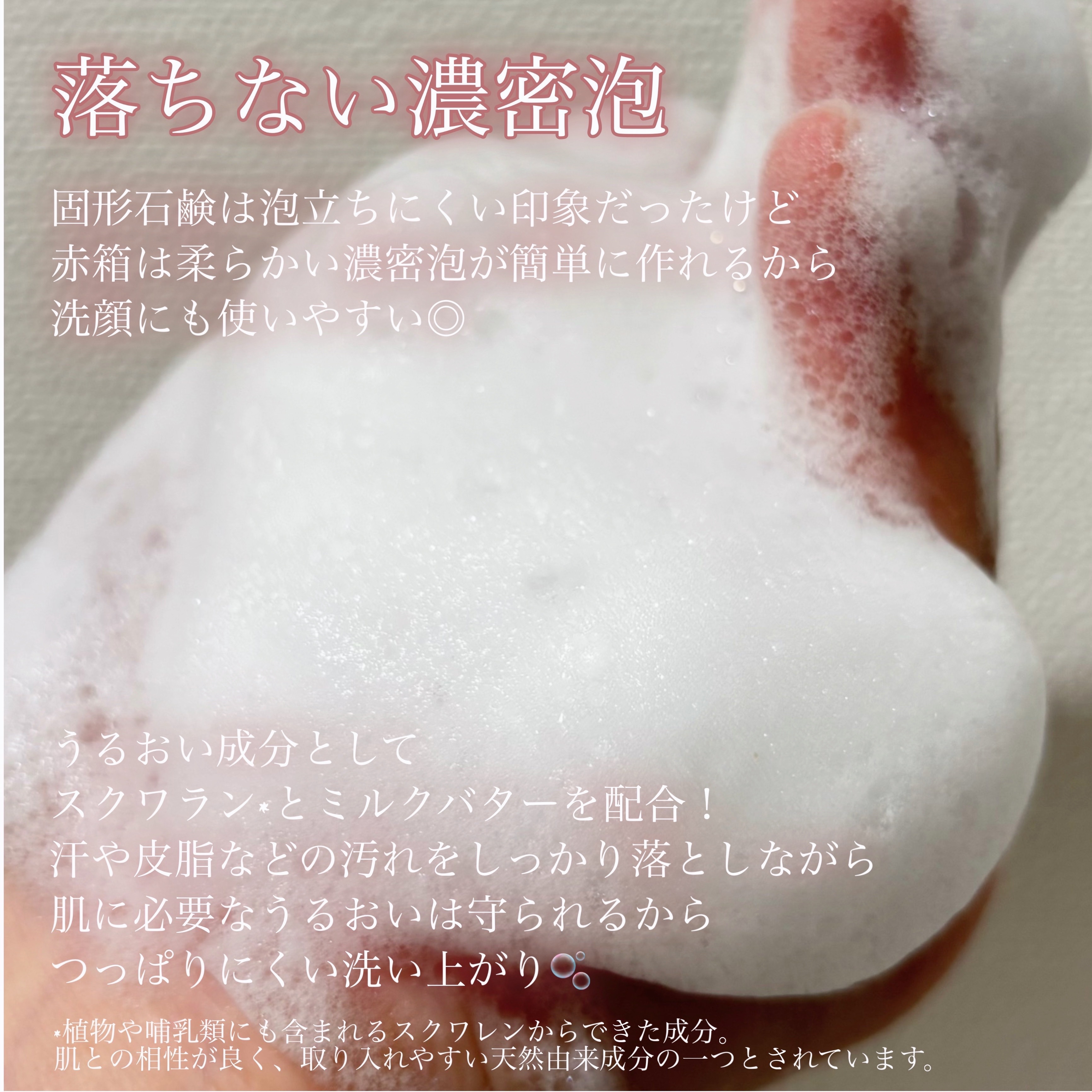 | 枠練り&コールドプロセスで作られているから、ちゃんと落ちるのにうるおう◎ | 詳細を見る | ||