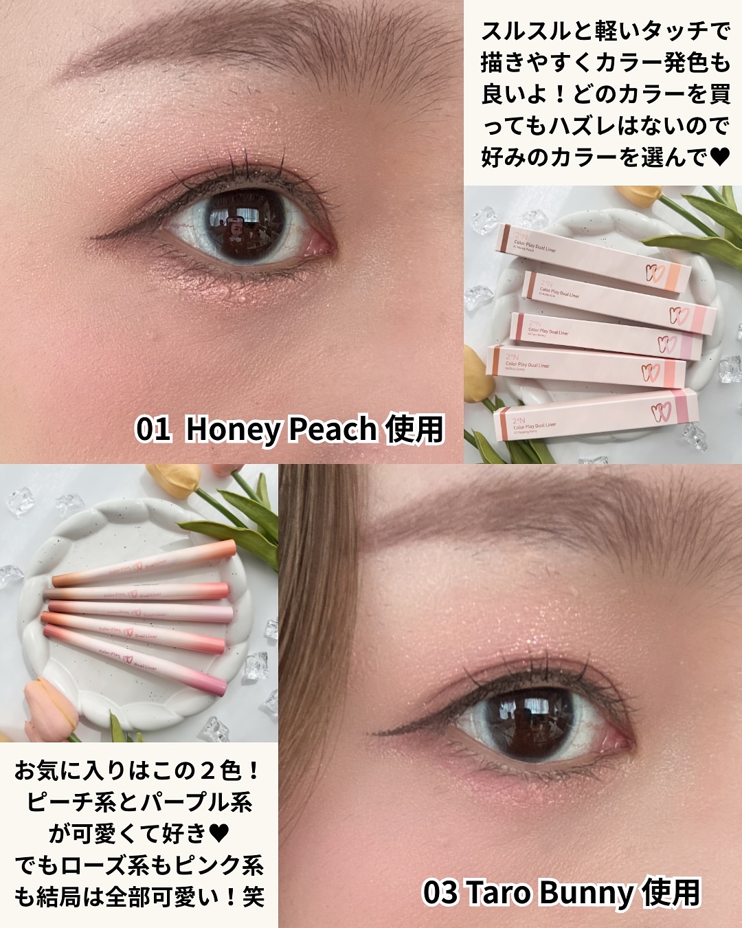 メガ割でお得に買える♡2aN新作涙袋&影色デュアルライナーパーソナルカラーだけじゃなくその日の気分やメイクに合わせて選べる全5色展開🎨暑い夏でも汗や皮脂に負けずに落ちにくい!今回は02べべピンクを涙袋と影色に使ってメイクしてみたよ👀...