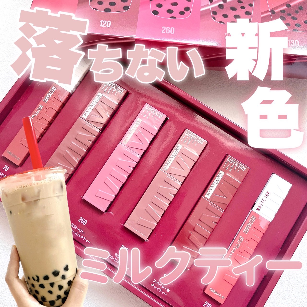 秋冬にぴったり♡落ち着いて、ビターなメイベリンのパールミルクティコレクションをスウォッチ✨️🥰MAYBELLINENEWYORKメイベリンニューヨークSPステイヴィニルインク260(甘酸っぱいストロベリーミルクティー)★限定色265(香ばしウ...