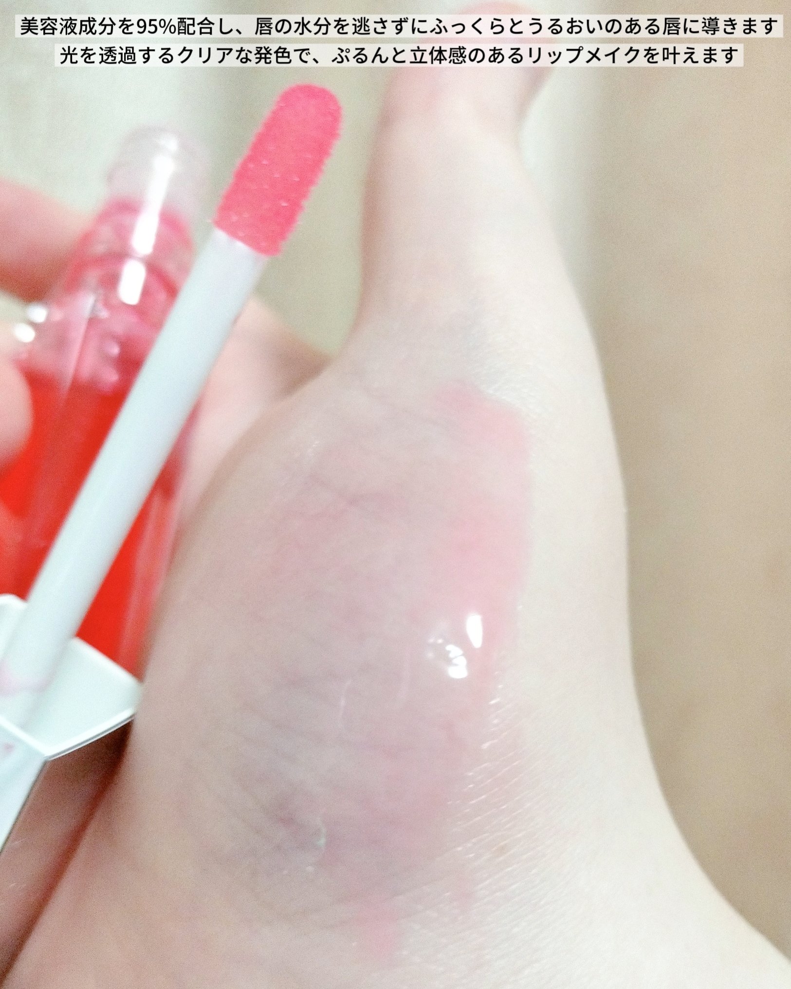 - ツヤ・色 注入※!ガラスのような透明感 メイクする唇美容液 ●注目のうるおい成分配合!メイクする唇美容液 ヒアルロン酸・ペプチド・ベニバナ花エキス配合(すべてうるおい成分)で乾燥から唇を守り、やわかく縦ジワのないふっくら※唇へ導きます。 ※ メイクアップ効果による ●美容液成分95%配合 唇の水分を逃さず、うるおいをキープします。 ●光を透過するクリアな発色で立体感アップ クリア3D発色を採用!ガラスのようなクリアな発色で理想のぷるん※とした唇へ導きます。 ※ メイクアップ効果による ●口紅の上からプラスワンアイテムとして使えるクリアな2色展開 お手持ちのリップの上に重ねて色とツヤをプラスします。 ●皮フ刺激テスト済み(すべての方に皮フ刺激が起こらないというわけではありません。)