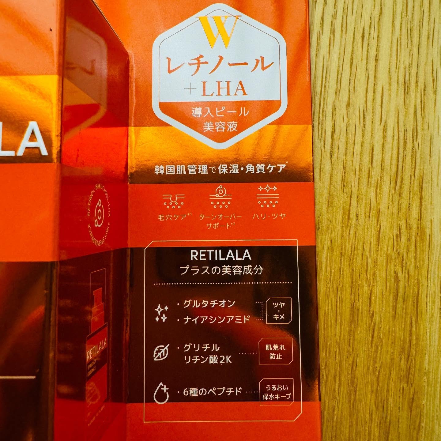 - <角質ケア*>と<保湿>のWケアができるレチララシリーズに洗顔後すぐに塗る「導入ピール美容液」が新登場! 肌のターンオーバーサポートケア成分*1として知られるレチノールと、“次世代レチノール”ともいわれるバクチオールを配合した美容液を開発しました。 さらに“第4世代ピーリング”として韓国での肌管理*にも使われるLHAも配合。 角質ケア*と保湿のWアプローチでまるでゆでたまごのような毛穴の目立たない、なめらかな透明素肌へと導きます。 ファーストステップ使い*3でスキンケアの浸透*2をサポート。 毛穴*4の目立たない、なめらかな透明素肌*5へ(レチノール、バクチオール LHA/カプリロイルサリチル酸(全て整肌成分) *うるおいケアのこと *1.ターンオーバーが乱れないように肌をうるおいで満たし整えること、 *2.角質層まで *3.洗顔後の肌にお使いいただけます。 同シリーズのシートマスクと併用する場合は、洗顔後にシートマスクをお使いいただき、化粧水、本品、乳液、もしくはクリーム等で肌を整えます。 *4.乾燥によって開いた毛穴のこと *5.うるおいを与えることによる肌印象のこと 先行発売日:2025年8月30日(土)ロフト、プラザにて先行発売 レチノール、バクチオール、LHA/カプリロイルサリチル酸、グルタチオン、ナイアシンアミド、グリチルリチン酸2K、6つのペプチド/アセチルヘキサペプチド-8、トリペプチド-1銅、パルミトイルペンタペプチド-4、アセチルテトラペプチド-5、パルミトイルテトラペプチド-7、パルミトイルトリペプチド-1、セラミド/セラミドNP(全て整肌成分)