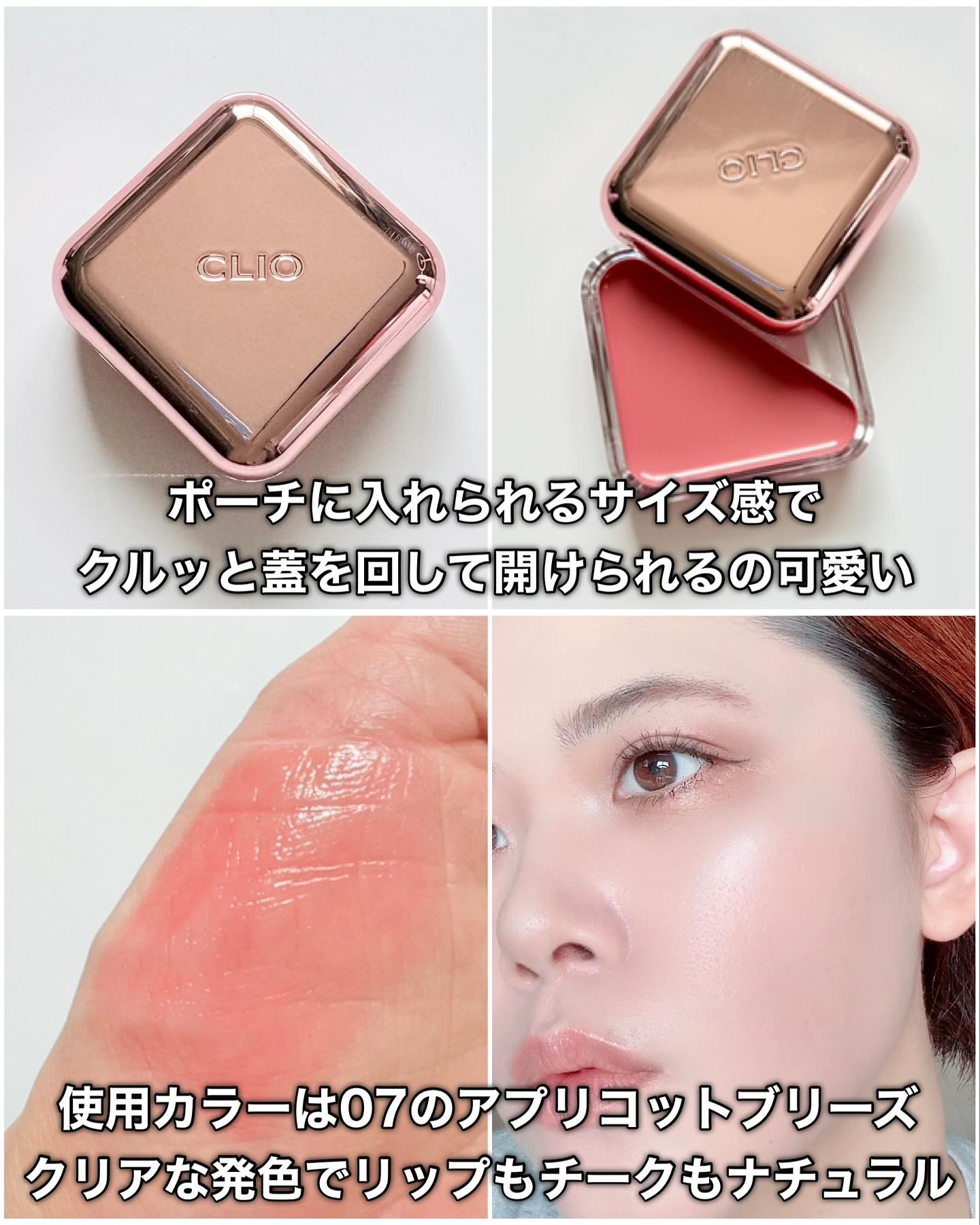 バズってるCLIOの新作リップ&チーク💄2way仕様で便利だよねイエベ👉07アプリコットブリーズブルベ👉08バブリープラム←使用カラー透け感×ツヤ感がかわいすぎ♡クッションと合わせると“生ツヤ肌”※1も簡単←ちなみに今愛用中。カバー力やばいや...