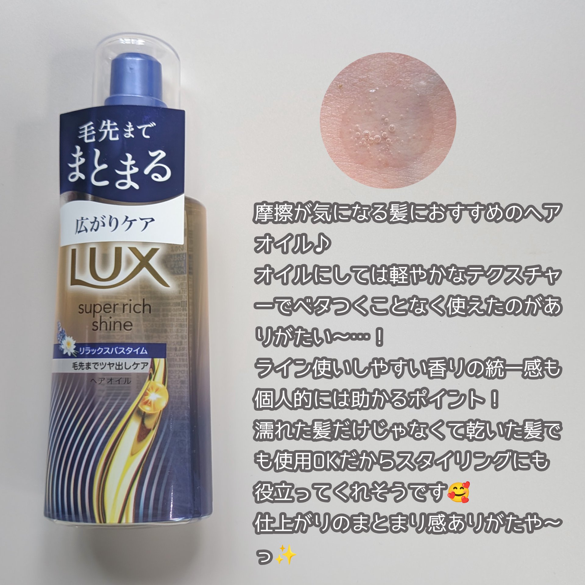商品詳細情報LUX ラックス スーパーリッチシャイン リラックスナイトケア まとまりヘアオイル