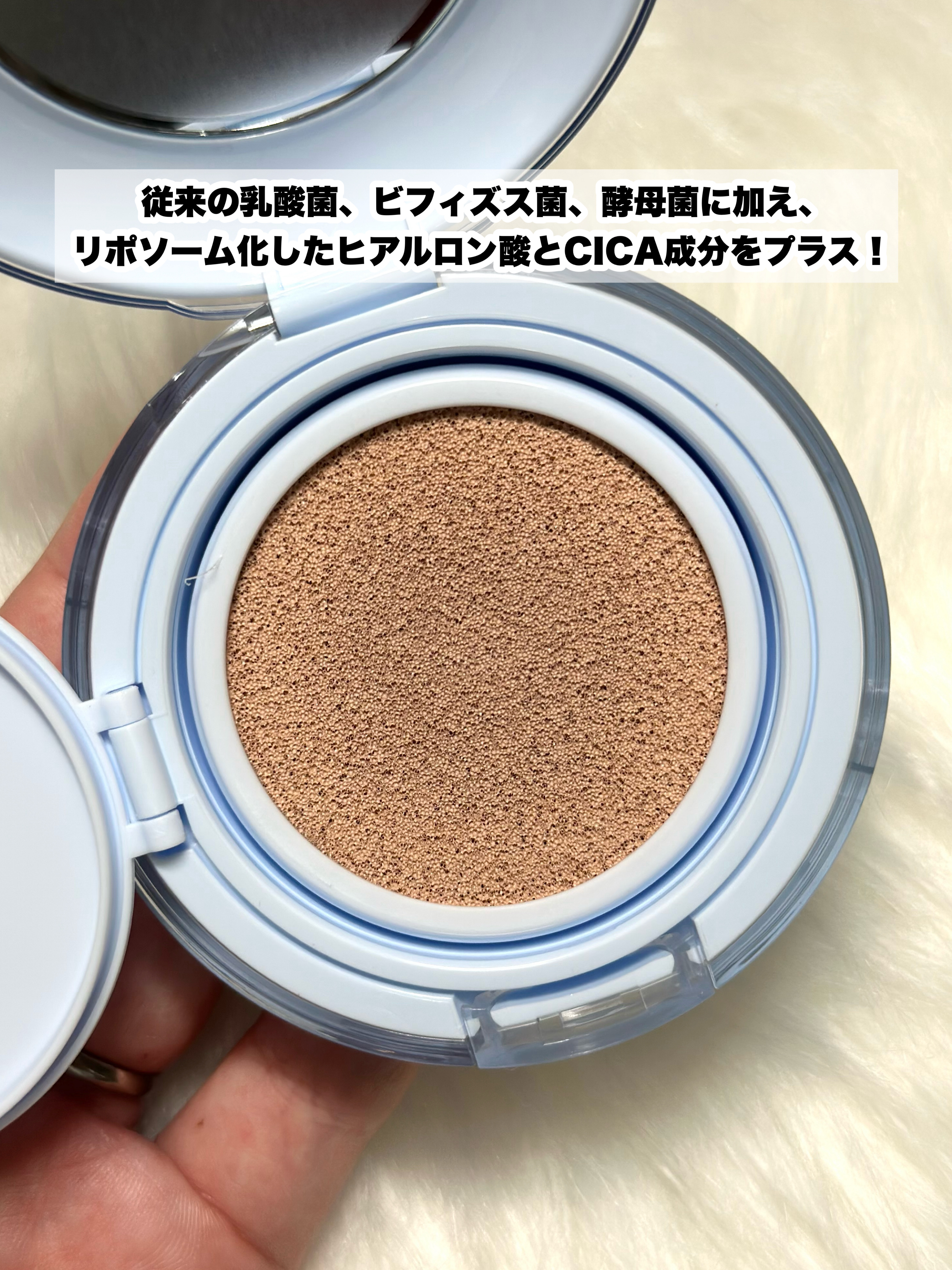- <PROBIOエッセンスクッションがバージョンUPして新発売!> 半透明カバーで補正する、まるで「塗る素肌」 素肌のような仕上がりなのに、毛穴・くすみをカバーするクッションファンデーションです。 従来の乳酸菌、ビフィズス菌、酵母菌に加え、リポソーム化したヒアルロン酸とCICA成分をプラス! 肌荒れを防ぎながら水光ヴェールをまとうことができます。 乳酸菌:乳酸桿菌培養溶解質、乳酸球菌培養溶解質 ビフィズス菌:ビフィズス菌培養溶解質 酵母菌:サッカロミセス培養溶解質液 CICA:マデカッソシド(全て整肌成分) ヒアルロン酸:ヒアルロン酸Na(保湿成分)