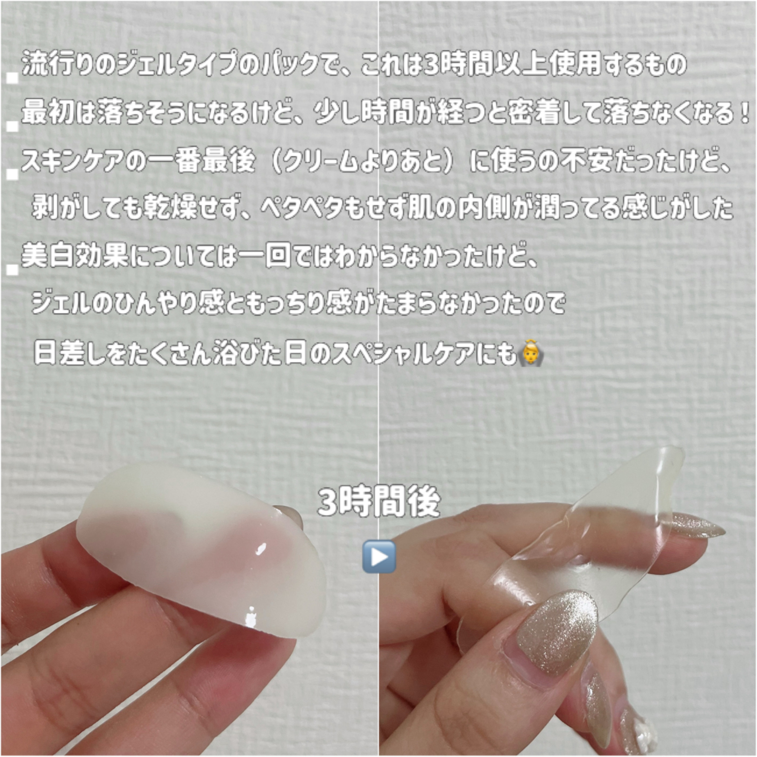 | ぷるぷるシートが新感覚なハイドロゲルマスク🙌肌表面はサラッとしていてすべすべ、 ほんのりつや感を感じる仕上がりが気に入ったよ◎ | 詳細を見る | |