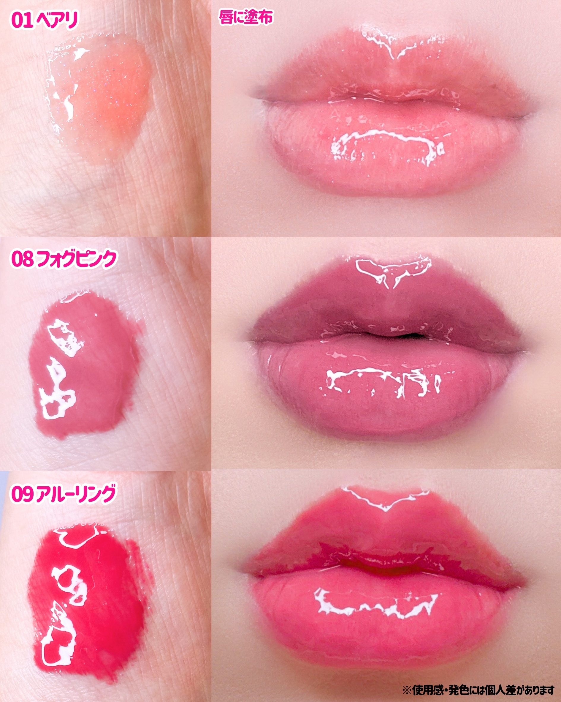 - VOLUMIZING MELTING TEXTURE プランピング効果でふっくら立体リップ LIP CARING ラズベリー(※1)成分配合でしっとり保湿 LAYERLING TIP とろけるテクスチャーでガラスみたいな光沢感 重ねるほど透明感UP! (※1) (ラズベリー種子油/コハク酸トコフェロール) アミノプロパンジオールエステルズ(保湿成分) 発売場所:全国のロフト、PLAZAの店舗(一部店舗を除く)及びネットストアにて先行発売 ※順次発売予定のため、店舗によってお取り扱い状況と在庫状況が異なる場合がございます。 先行発売日: 2025年10月11日(土)より順次発売