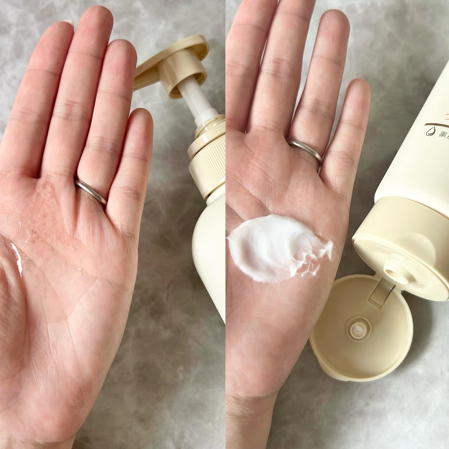 | シャンプーはさくっ、ふわっとしたきめの細かい泡で 泡立ちがとっても良いです。トリートメントはこっくりリッチなテクスチャー。 | 詳細を見る | |
