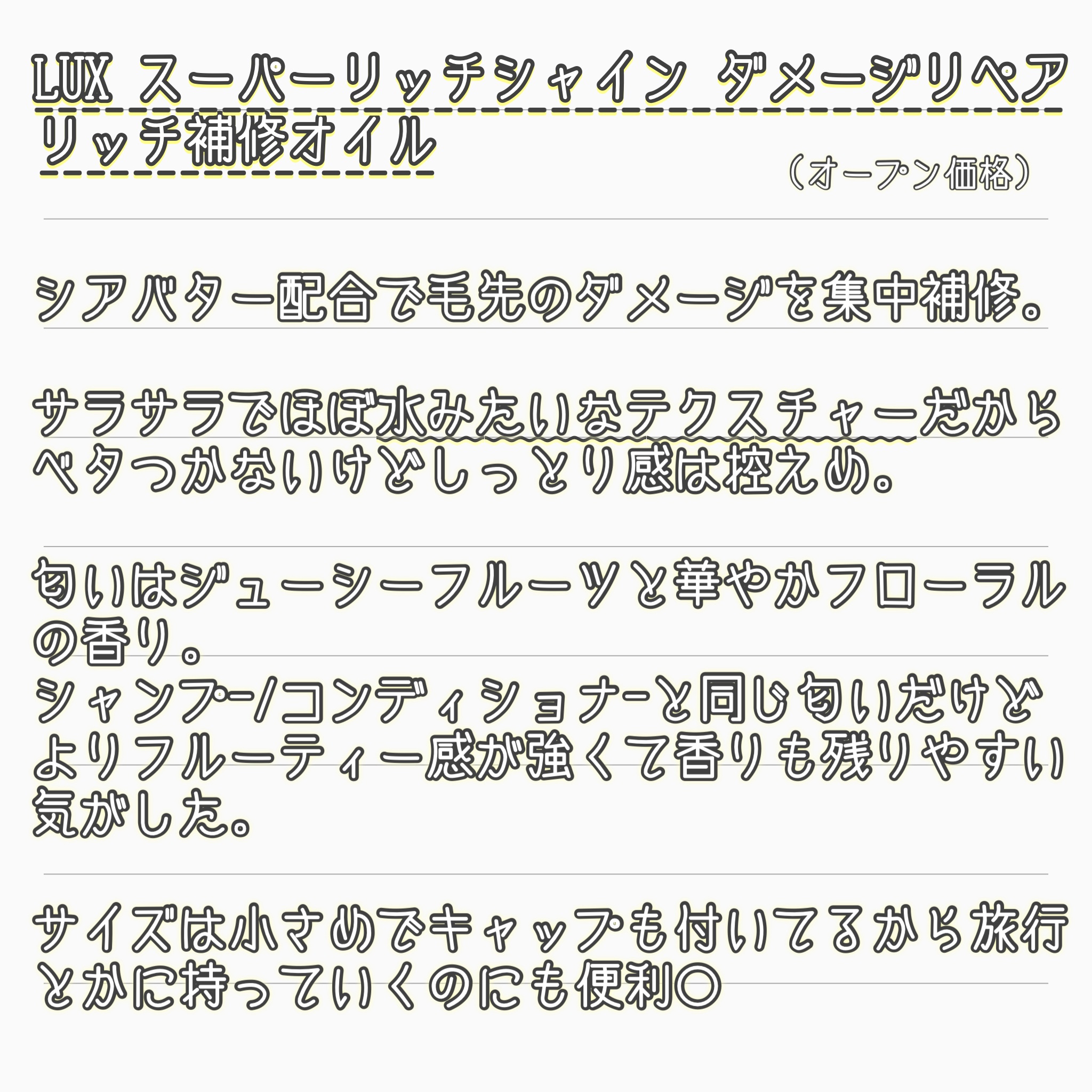 LUX スーパーリッチシャイン ダメージリペア リッチ補修オイル | オープン価格 |