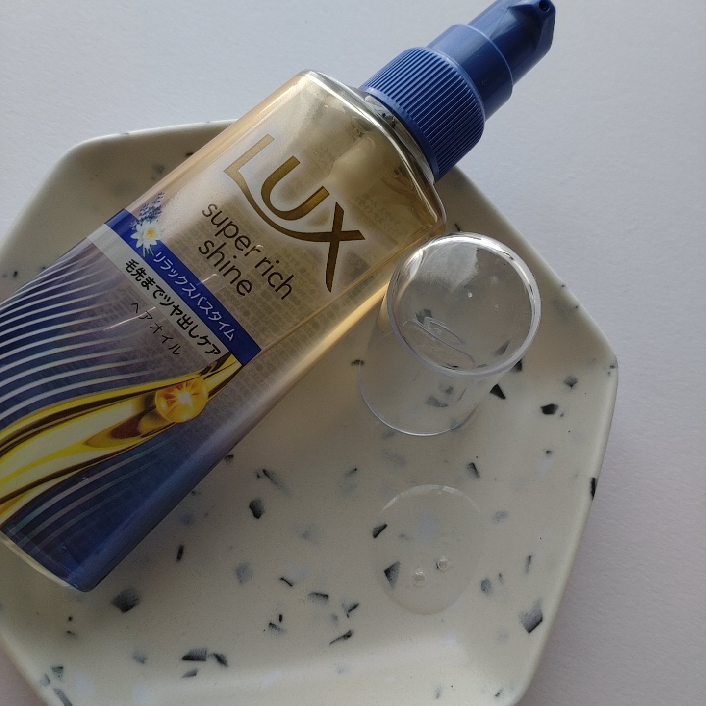 ラックス スーパーリッチシャイン リラックスナイトケア まとまりヘアオイルをお試しさせていただきました。深みのある青色のデザインが素敵。まろやかなとろみのあるヘアオイル。軽いオイルで、毛先までなじませやすいです。すっと伸びてくれるので、使いや...
