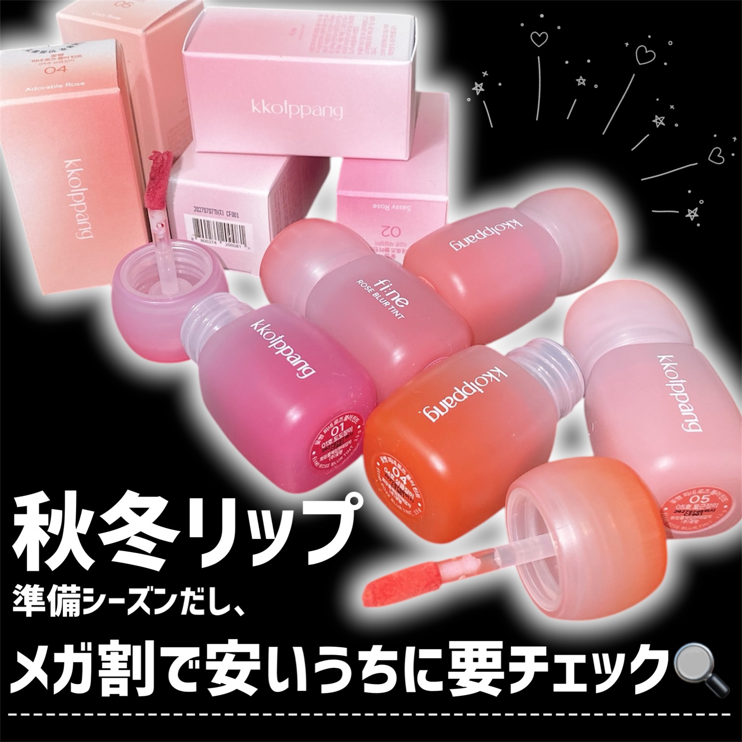 本日紹介するのはkkotppangのピネローズブラーティント💖コロンと可愛いフォルムのリップティント💕花びらのような柔らかいテクスチャーで、サラッとしたパウダー仕上がりに✨✨全部で5色🩵01ホーティローズ02サッシーローズ03シャイローズ 0...