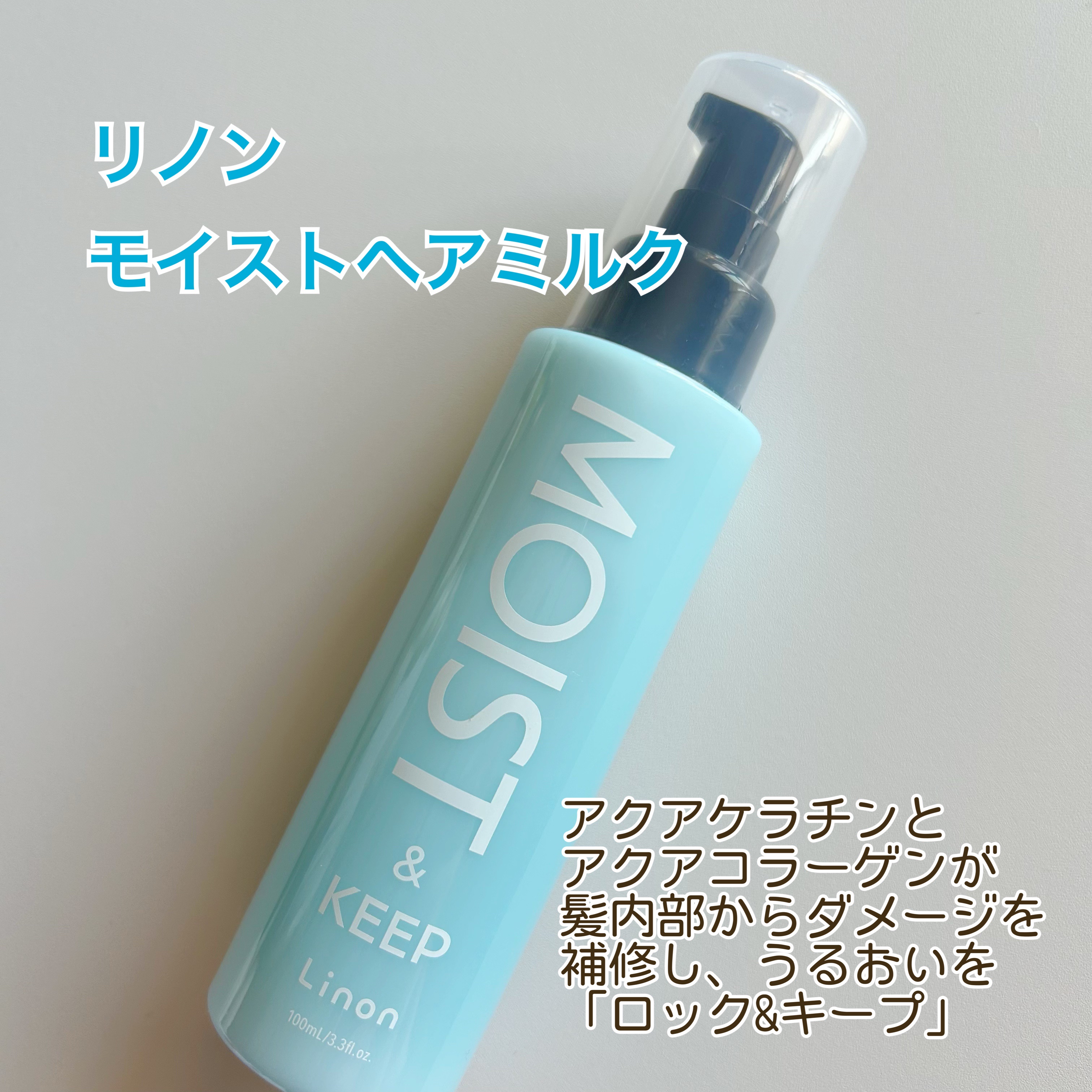 リノンモイストヘアミルクアクアケラチンとアクアコラーゲンが髪内部からダメージを補修し、うるおいを「ロック&キープ」!洗髪後タオルドライしてドライヤー前に使用。速乾&ヒートケア成分配合で、毎日のドライヤーやアイロンの熱から髪を守ってくれます。3...