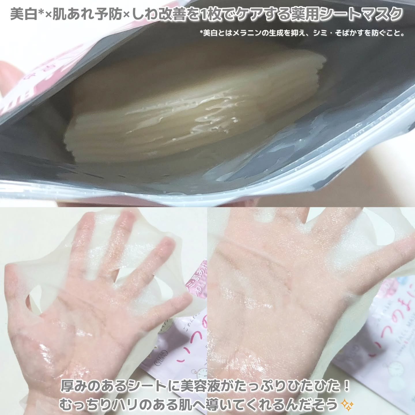 - 有効成分「ナイアシンアミド」配合で、シミ予防※・肌あれ予防・しわ改善を1枚で叶える薬用プレエイジングケア*2マスク。 とろみのある濃厚美容液が角層まで浸透し、むっちりハリのある肌へ。 *1メラニンの生成をおさえ、シミ・そばかすを防ぐ *2年齢に応じたケア