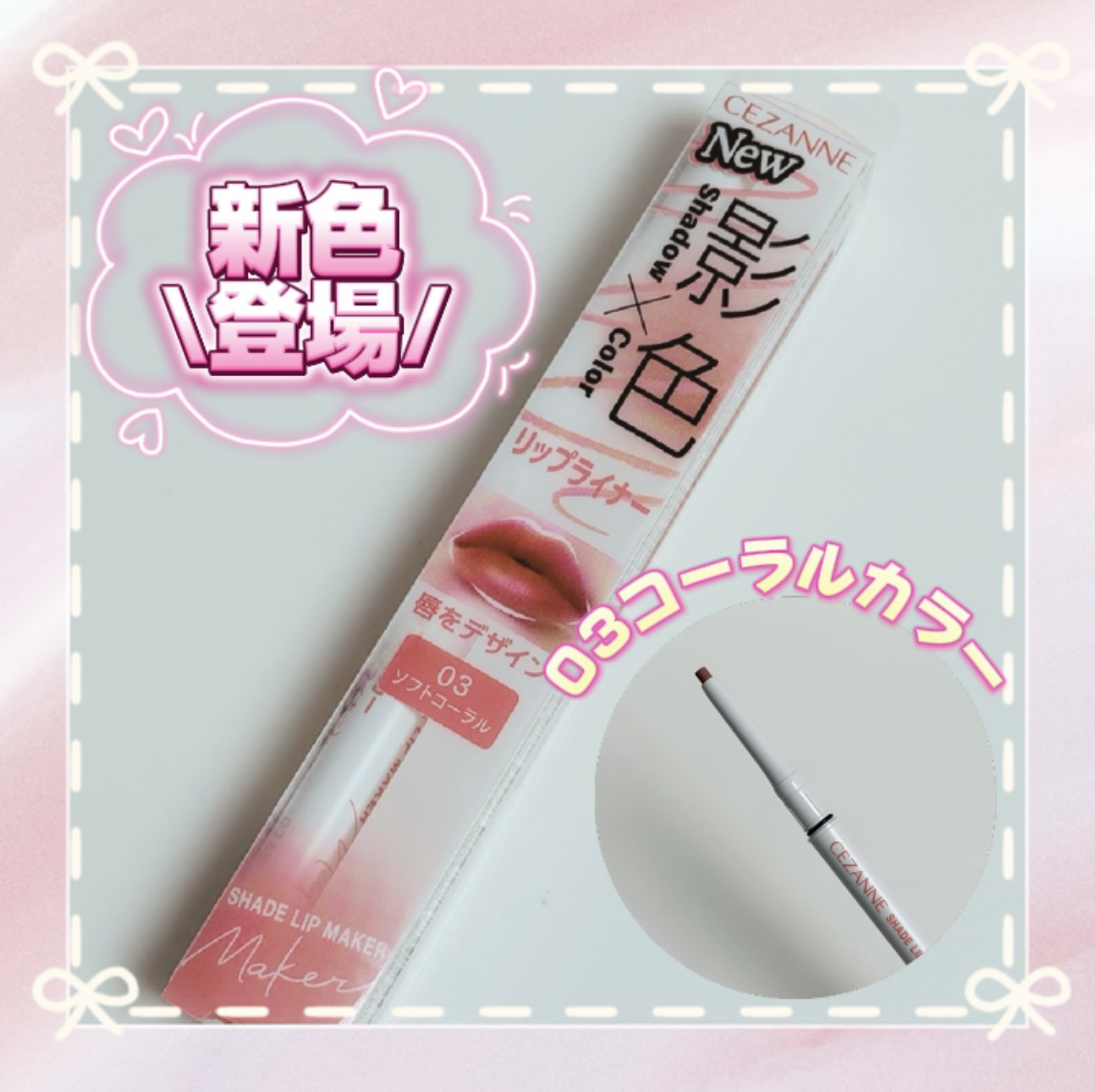 \唇💋色形、理想形へ/💎CEZANNE影色リップメイカー⚫︎02クールピンク¥660🔖手に塗布した時はブラウン系に感じますが、唇に塗ると青みを感じる粘膜色に。🔖唇の山に塗布して人中短縮に使ったり、唇の色むらを補正するのに便利。🔖上唇の口角側に...