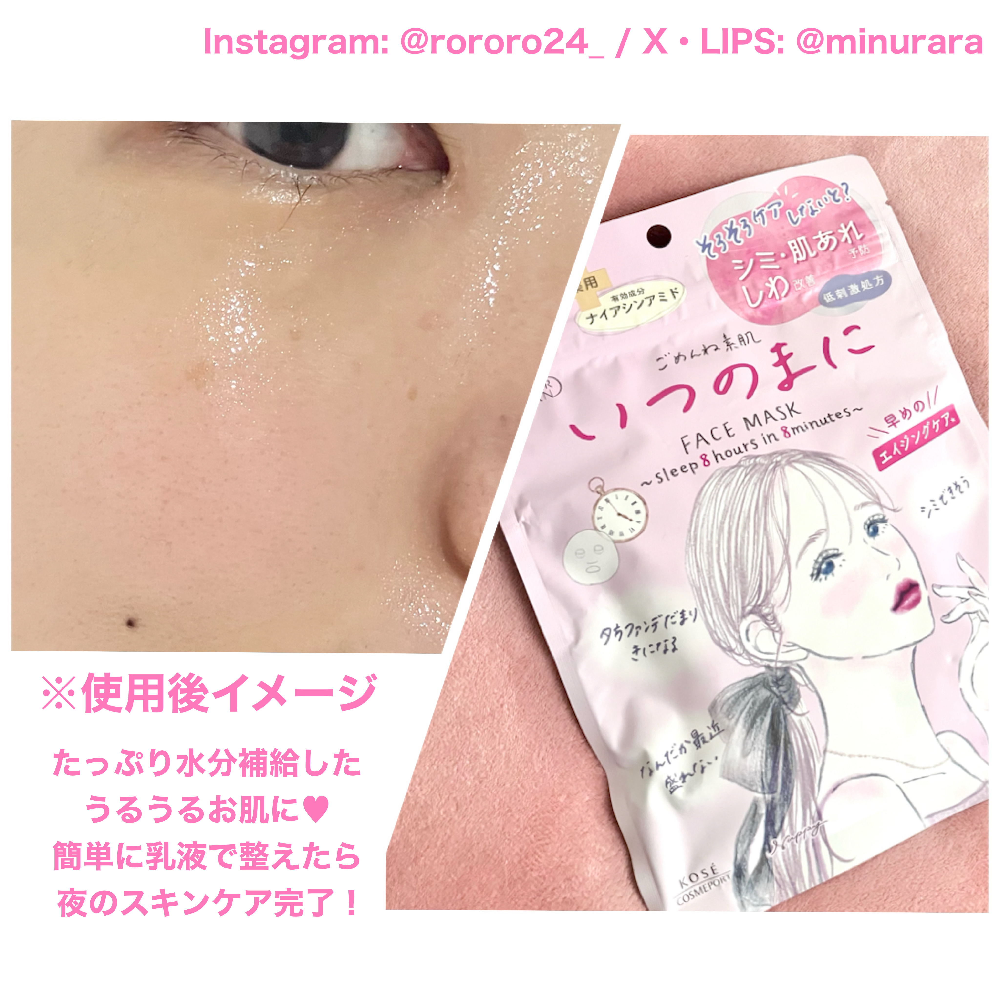 .クリアターンごめんね素肌いつのまにマスク🌸8月新発売❤️薬用エイジングケア用のいつのまにマスク😷ナイアシンアミドやグルタチオン、ヒアルロン酸配合で美白・肌あれケア・しわ改善におすすめ✨厚手の柔らかいシートなので、デリケートな目元までしっかり...