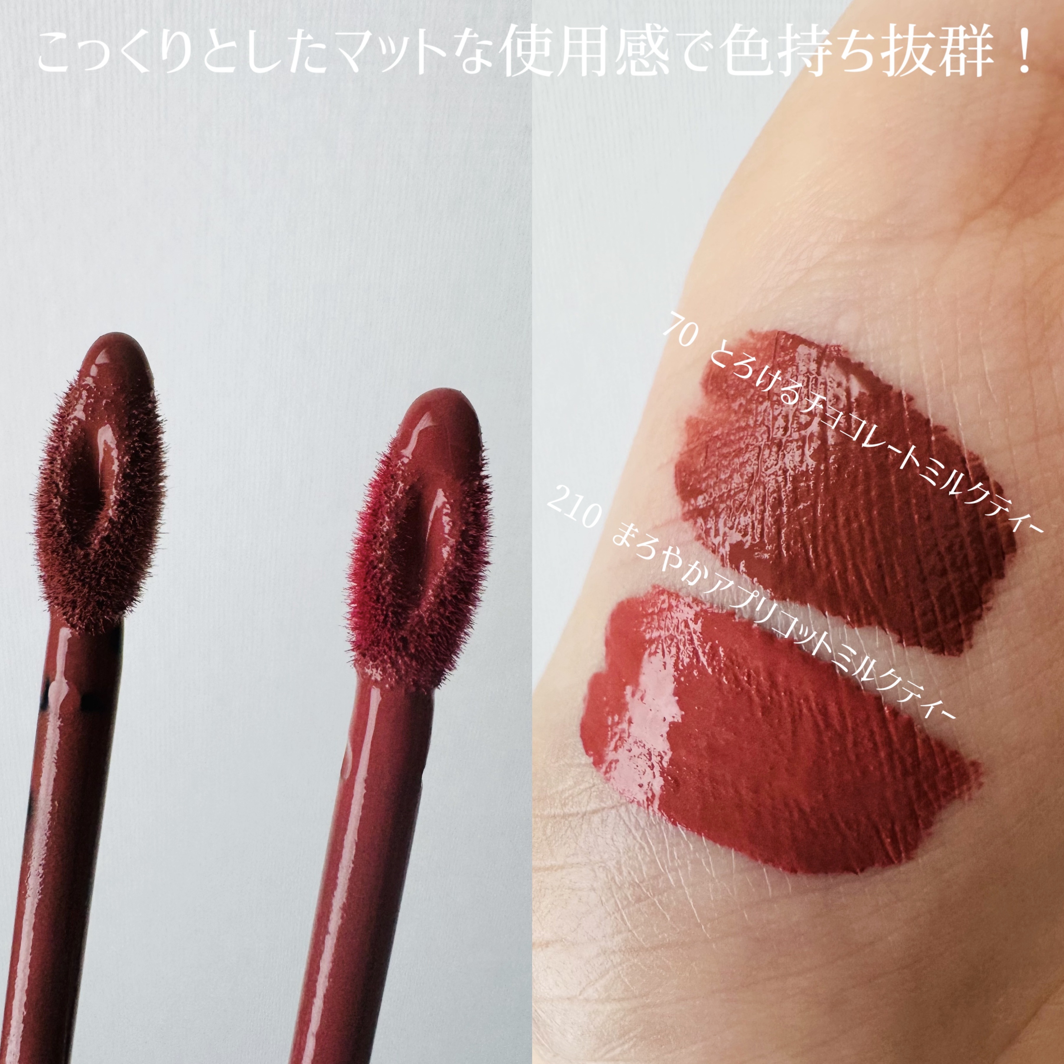 秋冬にぴったり♡落ち着いて、ビターなメイベリンのパールミルクティコレクションをスウォッチ✨️🥰MAYBELLINENEWYORKメイベリンニューヨークSPステイヴィニルインク260(甘酸っぱいストロベリーミルクティー)★限定色265(香ばしウ...