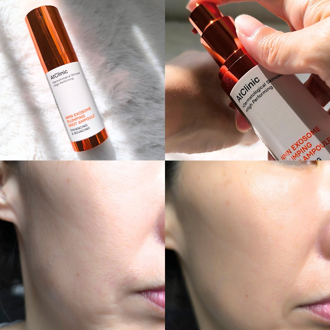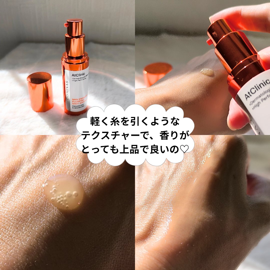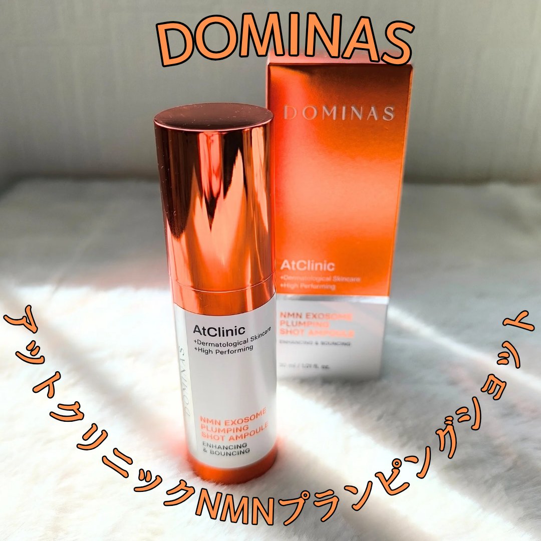 DOMINASアットクリニックNMNプランピングショット次世代抗老化成分のNMN+エクソソーム老化により弾力を失い凹んだお肌の弾力を満たしぷりっとお肌に導いてくれる、プランピンクショットオレンジ色のとろみのあるテクスチャーでスルスル伸びて...