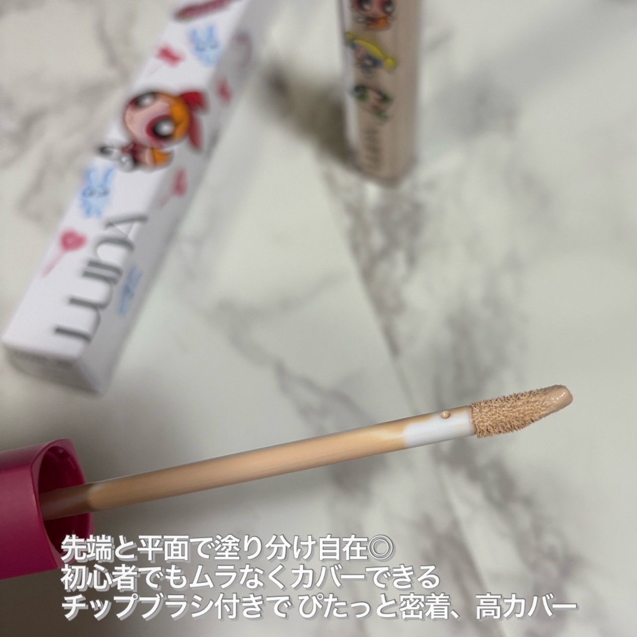 #Qoo10メガ割#PR#supportedbyLUNALUNAロングラスティングコンシーラーパワーパフガールズコラボPLAZA&数量限定のパワーパフガールズコラボ💖チップブラシの先端と平面で塗り分け自在🫰🏻色味はどれも明るめに感じた〜!私の...