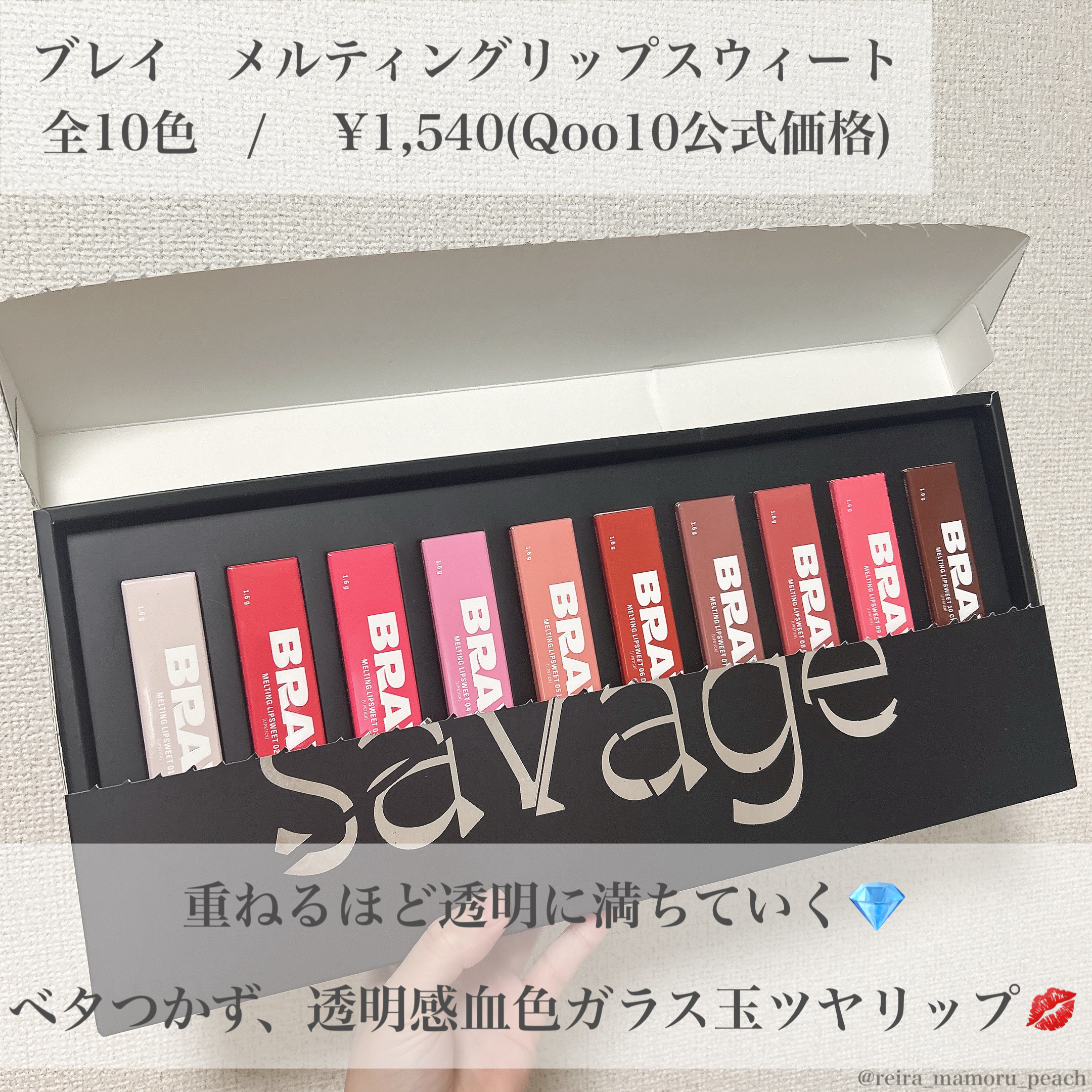 BRAYE(ブレイ)ブレイから新作リップが登場💗♡メルティングリップスウィート唇の温度でとろけるツヤツヤリップ🫧✨️高発色だけどもったり重くない色付き方でしっとり感も長時間続くよ🫶01ベアリは見た目はオレンジっぽいけど塗るとほぼ透明のラメ感重...