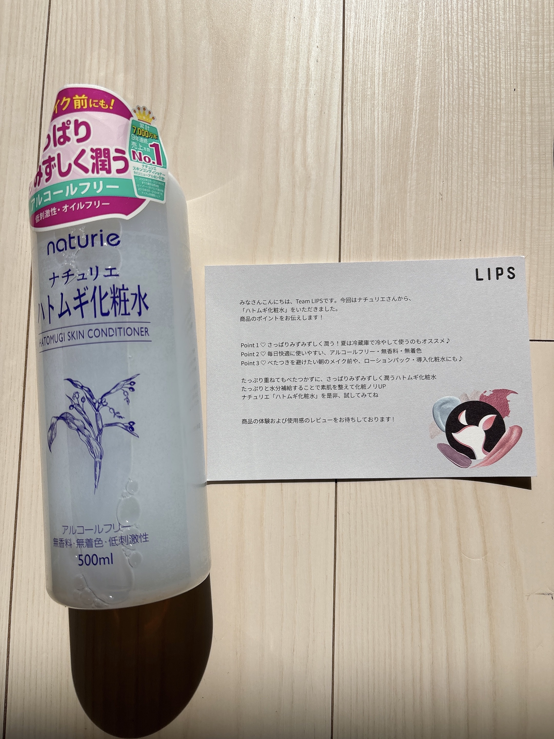 ナチュリエハトムギ化粧水スキンコンディショナーR500mlLIPSプレゼントで当選しました。化粧水を1つに決めきれていないですが色々試しながらこちらの商品はずっと使い続けています。大容量で値段が安く、バシャバシャ使える点が良いです。サラッとし...
