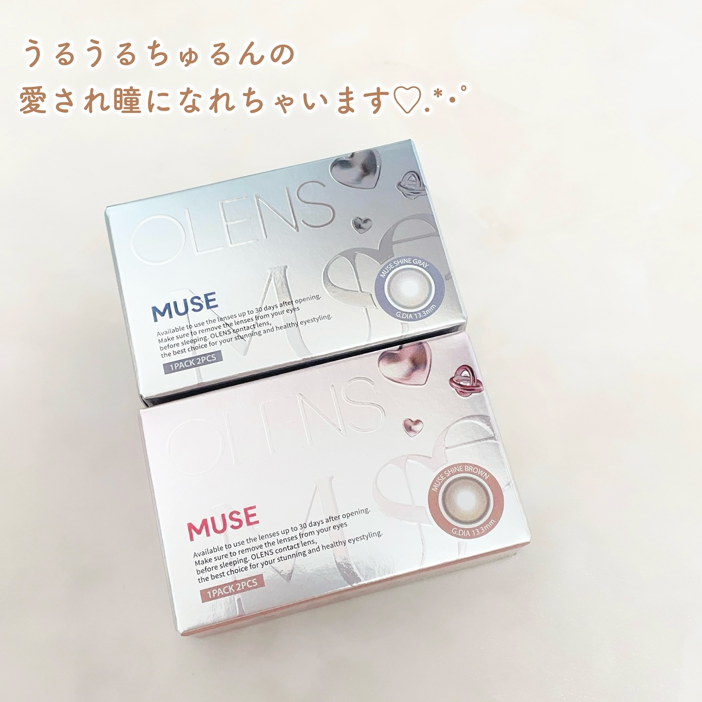 ♡ビー玉のようなちゅるんと水光カラコン🤍▷OLENSMUSEShineGray,ShineBrown1Month(1箱2枚入り)DIA14.0mm着色直径13.3mm含水率38%ハイライターが瞳にツヤ感を出してくれて透明感あるナチュラルなちゅ...