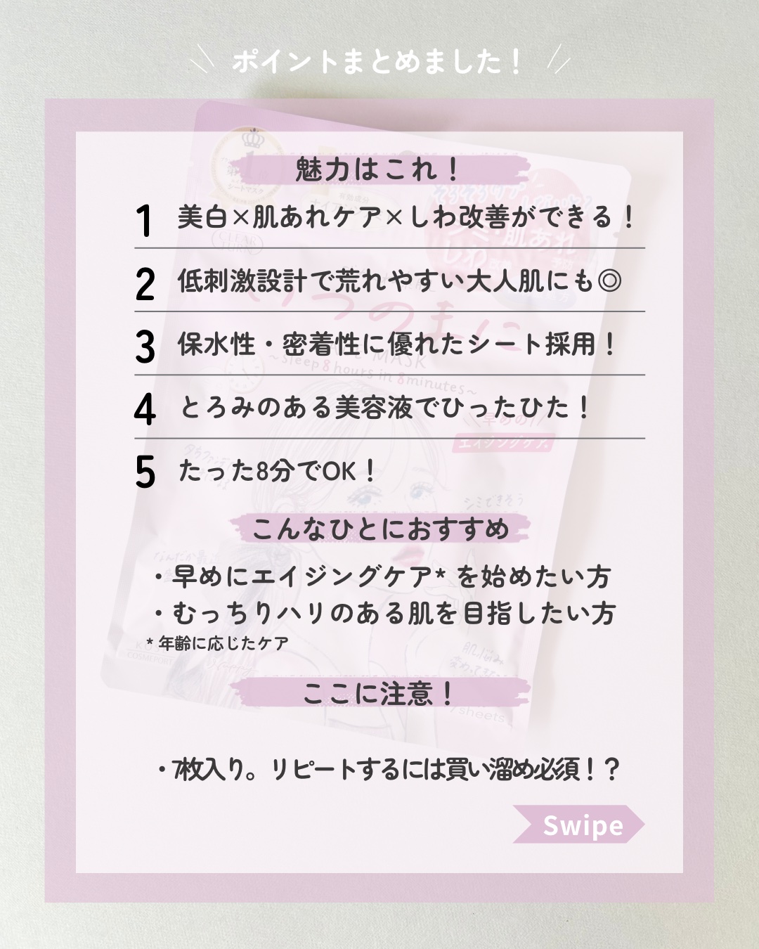 | スキンケアランキング第77位 | 肌あたりがよく薄くて柔らかいシートが密着してヨレにくい!お米のようなまろやかな感じで乳液っぽい美容液💓 | 詳細を見る | |