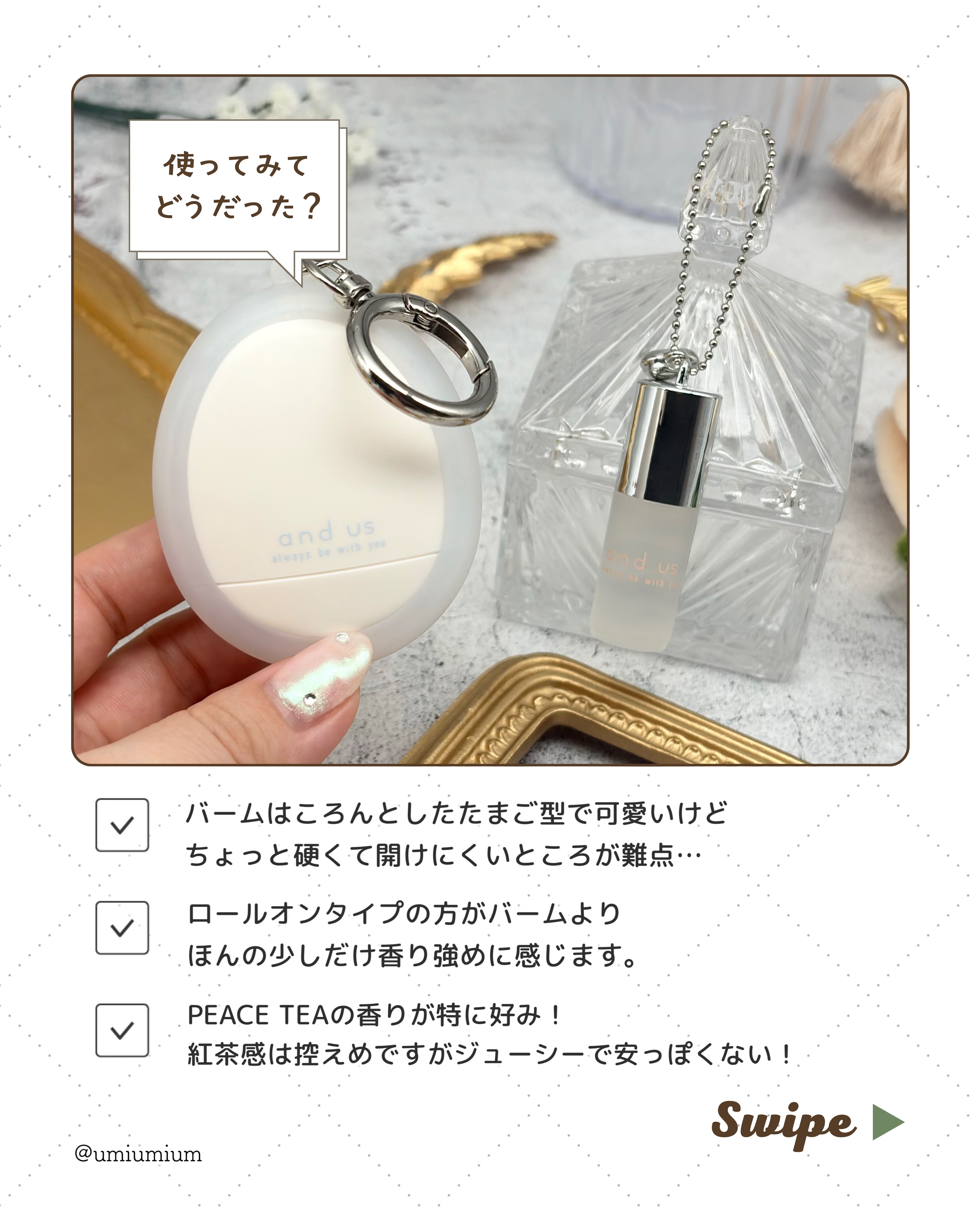 | うっとりするような香り♡ロールで付けたい量を調整できるのもとってもいい点♪ | 詳細を見る | ||