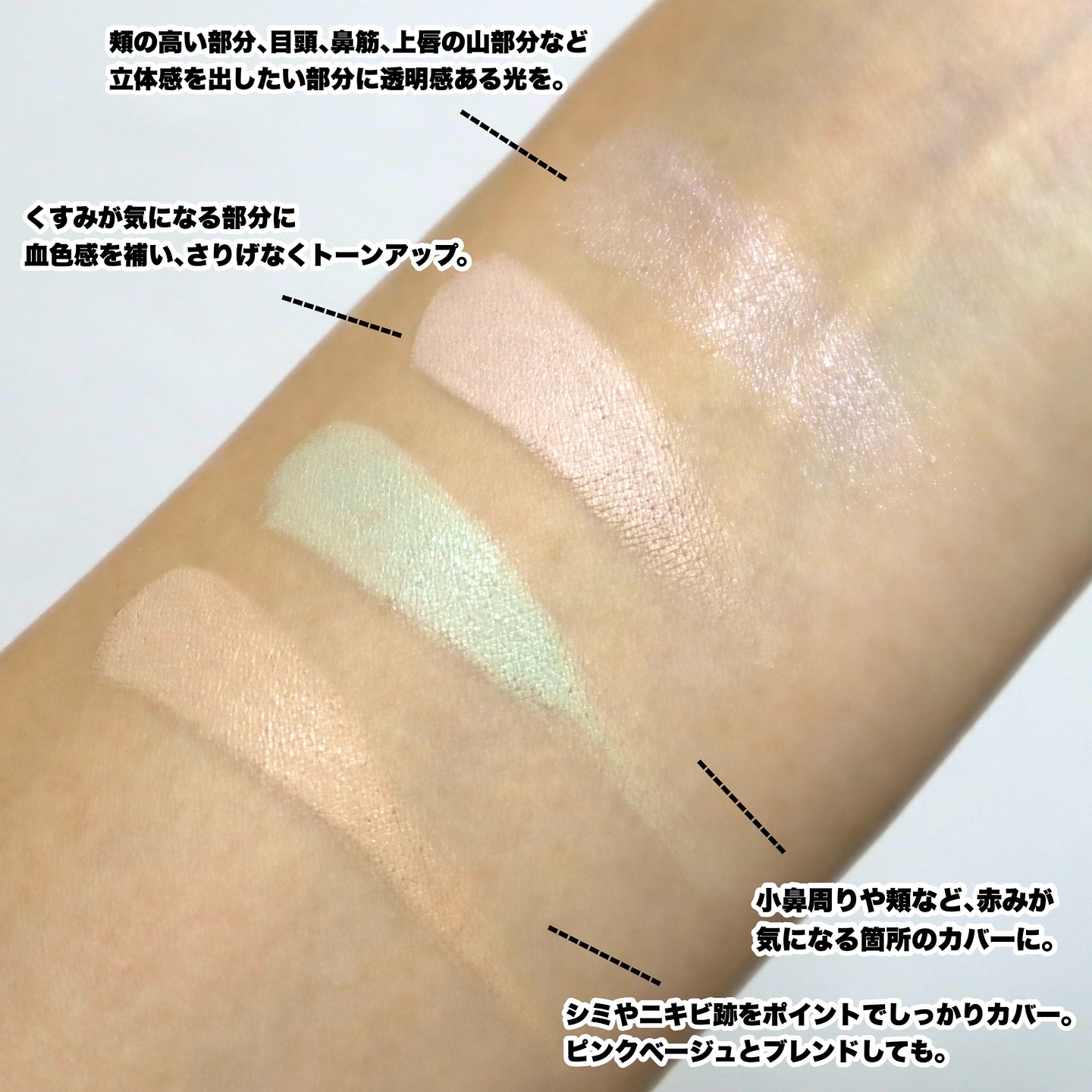- 肌悩みは日によって違うから。 ベースメイクの仕上がりを洗練へ導く4色パレット その日、その人の肌悩みに合わせてカスタム使いができる、4つの機能を詰め込んだパレット。 ツヤを仕込むハイライト、ライブリーな肌印象を作る2色のコントロールカラー、そしてポイントカバーができるコンシーラーがイン。 自分らしくカスタムして、いつでも理想の肌へ。