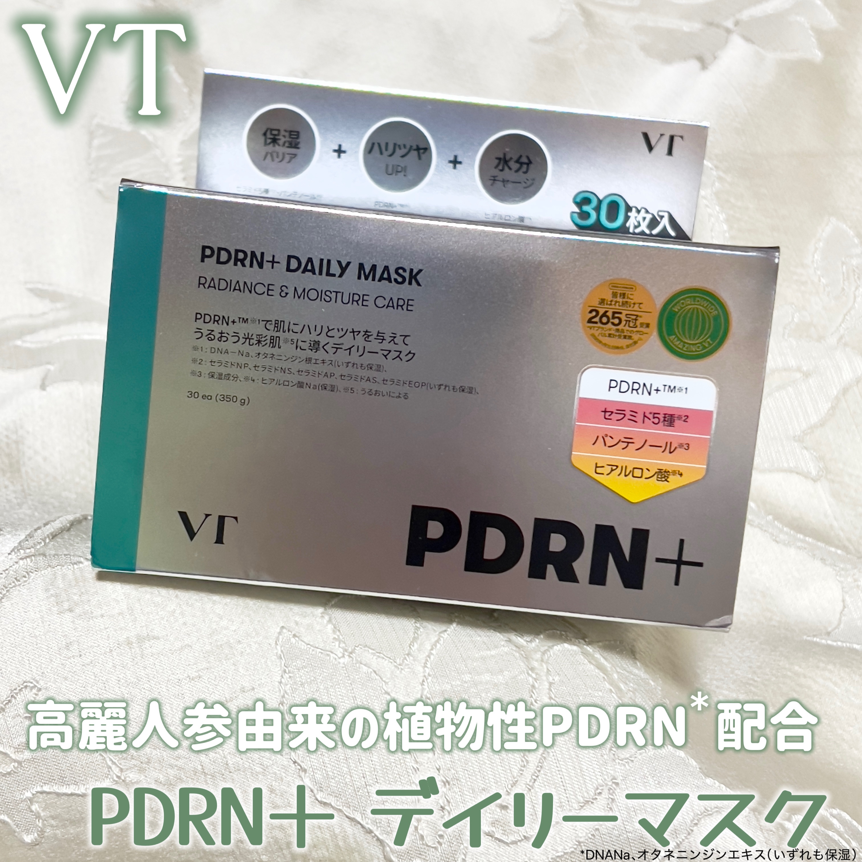 VTさまからいただきましたPDRN+DAILYMASKデイリーマスクといえばVT!毎日手軽に使える30枚入りで、ハリツヤをチャージできる嬉しいアイテム◎柔らかいシートにエッセンスがひたひた。さらっとした使い心地なので朝使うのもおすすめです☀️...