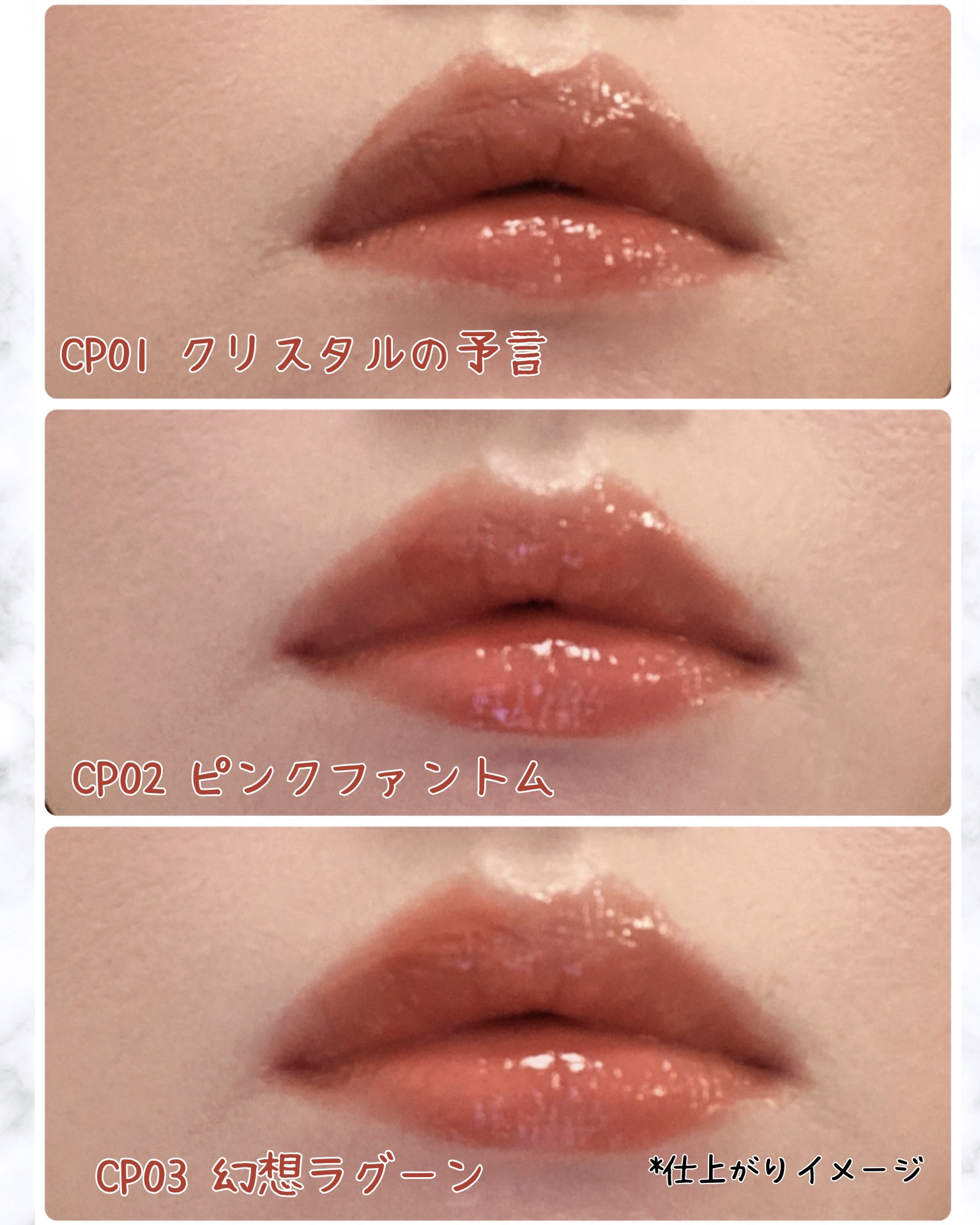 - <CP01 クリスタルの予言> テトライソステアリン酸ジペンタエリスリチル、デカイソステアリン酸ポリグリセリル-10、オクチルドデカノール、リンゴ酸ジイソステアリル、ラウロイルグルタミン酸ジ(フィトステリル/オクチルドデシル)、ビスアルキル(C16-18)グリセリルウンデシルジメチコン、トリ(カプリル酸/カプリン酸)グリセリル、水添ポリイソブテン、ラウロイルグルタミン酸ジ(オクチルドデシル/フィトステリル/ベヘニル)、パラフィン、ダイマージリノール酸(フィトステリル/イソステアリル/セチル/ステアリル/ベヘニル)、合成ワックス、ホホバ種子油、マイクロクリスタリンワックス、ジステアルジモニウムヘクトライト、水添マイクロクリスタリンワックス、炭酸プロピレン、トコフェロール、パルミチン酸デキストリン、オリーブ果実油、アーモンド油、(エチレン/プロピレン)コポリマー、ポリエチレン、ヒドロキシステアリン酸エチルヘキシル、ヒアルロン酸Na、フェノキシエタノール、(+/-)セルロース、マイカ、ラウロイルアスパラギン酸Na、ラウロイルリシン、塩化亜鉛、酸化チタン、酸化鉄、水酸化Al、硫酸Ba、トリイソステアリン酸イソプロピルチタン、トリエトキシカプリリルシラン、黄4、黄5、青1、赤201、赤202 <CP02 ピンクファントム> テトライソステアリン酸ジペンタエリスリチル、デカイソステアリン酸ポリグリセリル-10、オクチルドデカノール、リンゴ酸ジイソステアリル、ラウロイルグルタミン酸ジ(フィトステリル/オクチルドデシル)、ビスアルキル(C16-18)グリセリルウンデシルジメチコン、トリ(カプリル酸/カプリン酸)グリセリル、水添ポリイソブテン、ラウロイルグルタミン酸ジ(オクチルドデシル/フィトステリル/ベヘニル)、パラフィン、ダイマージリノール酸(フィトステリル/イソステアリル/セチル/ステアリル/ベヘニル)、合成ワックス、ホホバ種子油、マイクロクリスタリンワックス、ジステアルジモニウムヘクトライト、水添マイクロクリスタリンワックス、炭酸プロピレン、トコフェロール、パルミチン酸デキストリン、オリーブ果実油、アーモンド油、(エチレン/プロピレン)コポリマー、ポリエチレン、ヒドロキシステアリン酸エチルヘキシル、ヒアルロン酸Na、フェノキシエタノール、(+/-)セルロース、マイカ、ラウロイルアスパラギン酸Na、ラウロイルリシン、塩化亜鉛、酸化チタン、酸化鉄、水酸化Al、硫酸Ba、トリイソステアリン酸イソプロピルチタン、トリエトキシカプリリルシラン、黄4、黄5、青1、赤201、赤202 <CP03 幻想ラグーン> テトライソステアリン酸ジペンタエリスリチル、デカイソステアリン酸ポリグリセリル-10、オクチルドデカノール、リンゴ酸ジイソステアリル、ラウロイルグルタミン酸ジ(フィトステリル/オクチルドデシル)、ビスアルキル(C16-18)グリセリルウンデシルジメチコン、トリ(カプリル酸/カプリン酸)グリセリル、水添ポリイソブテン、ラウロイルグルタミン酸ジ(オクチルドデシル/フィトステリル/ベヘニル)、パラフィン、ダイマージリノール酸(フィトステリル/イソステアリル/セチル/ステアリル/ベヘニル)、合成ワックス、ホホバ種子油、マイクロクリスタリンワックス、ジステアルジモニウムヘクトライト、水添マイクロクリスタリンワックス、炭酸プロピレン、トコフェロール、パルミチン酸デキストリン、オリーブ果実油、アーモンド油、(エチレン/プロピレン)コポリマー、ポリエチレン、ヒドロキシステアリン酸エチルヘキシル、ヒアルロン酸Na、フェノキシエタノール、(+/-)セルロース、マイカ、ラウロイルアスパラギン酸Na、ラウロイルリシン、塩化亜鉛、酸化チタン、酸化鉄、水酸化Al、硫酸Ba、トリイソステアリン酸イソプロピルチタン、トリエトキシカプリリルシラン、黄4、黄5、青1、赤201、赤202