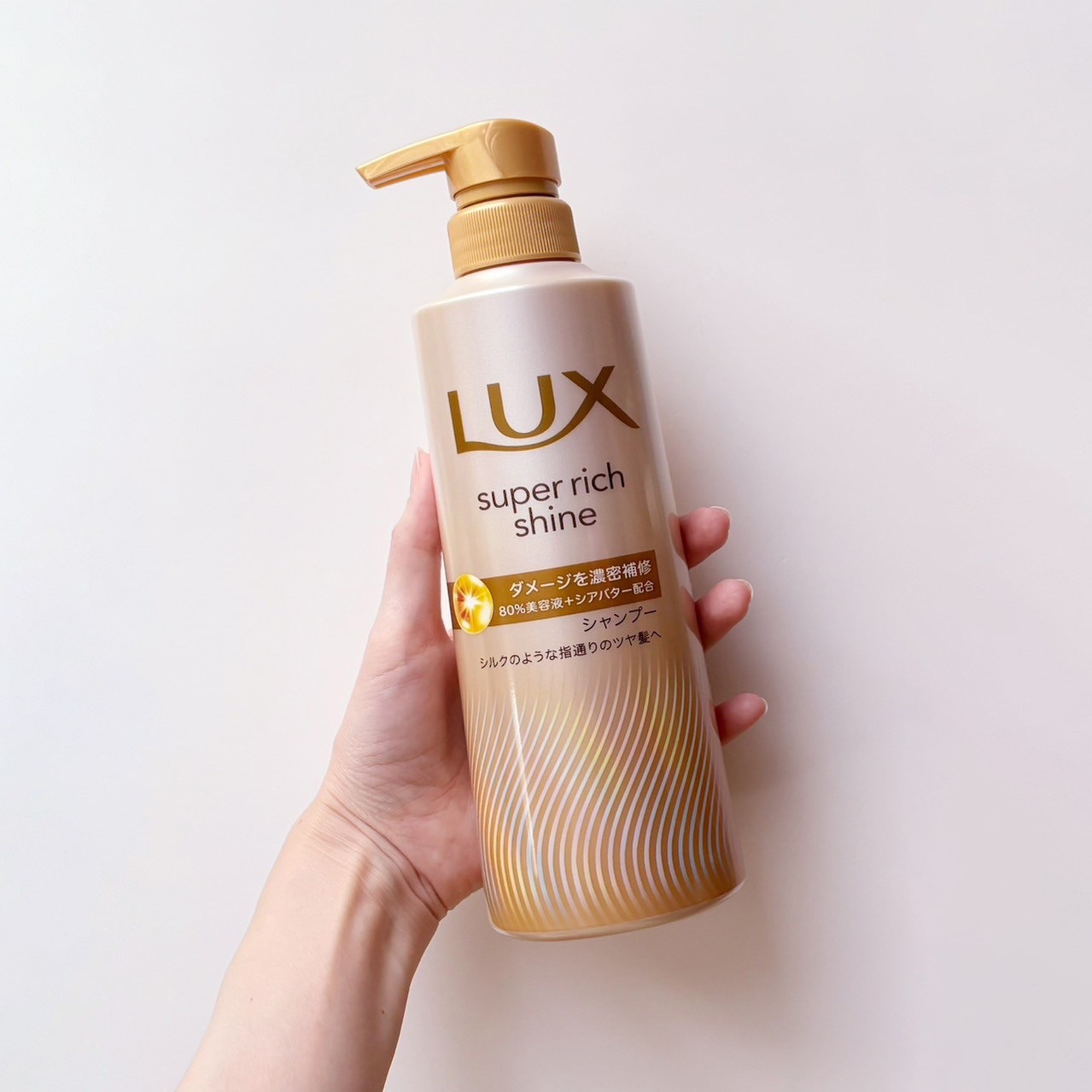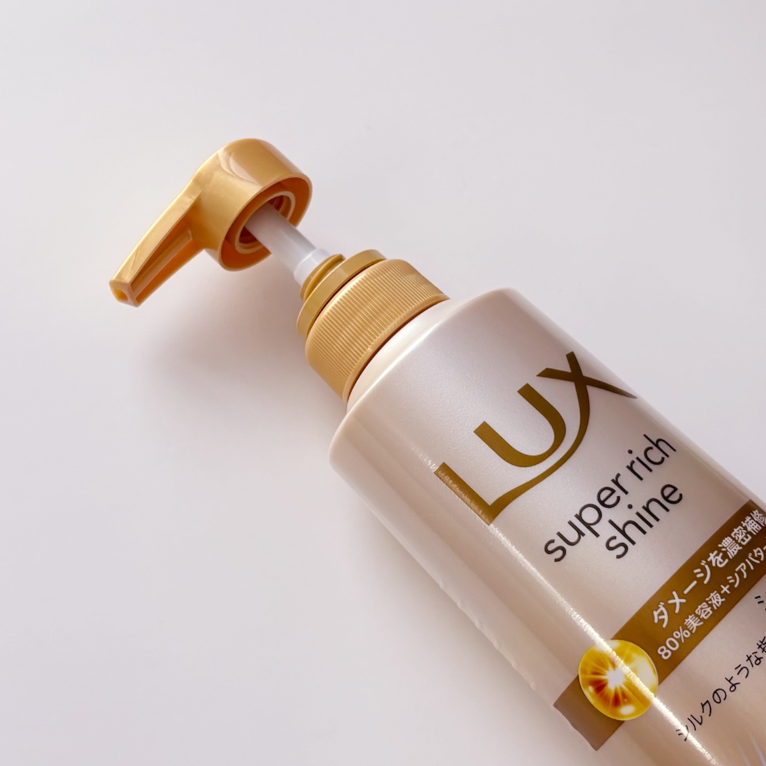 LUXスーパーリッチシャインダメージリペア 補修シャンプー/コンディショナーダメージでからまる髪にシルクのような指通りのツヤ髪へ。80%美容液*1処方、シルク・アルガンオイル*2配合。毛先のダメージも集中補修、シアバター(補修成分)配合。🍊🏵...