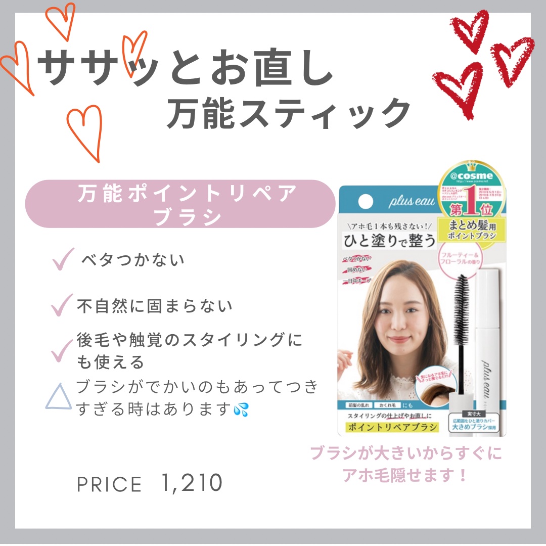 | ヘアケア・スタイリングランキング第3位 | アホ毛にはもちろん、前髪のスタイリング、まとめ髪の抑えにも本当に便利だと思います | 詳細を見る | |
