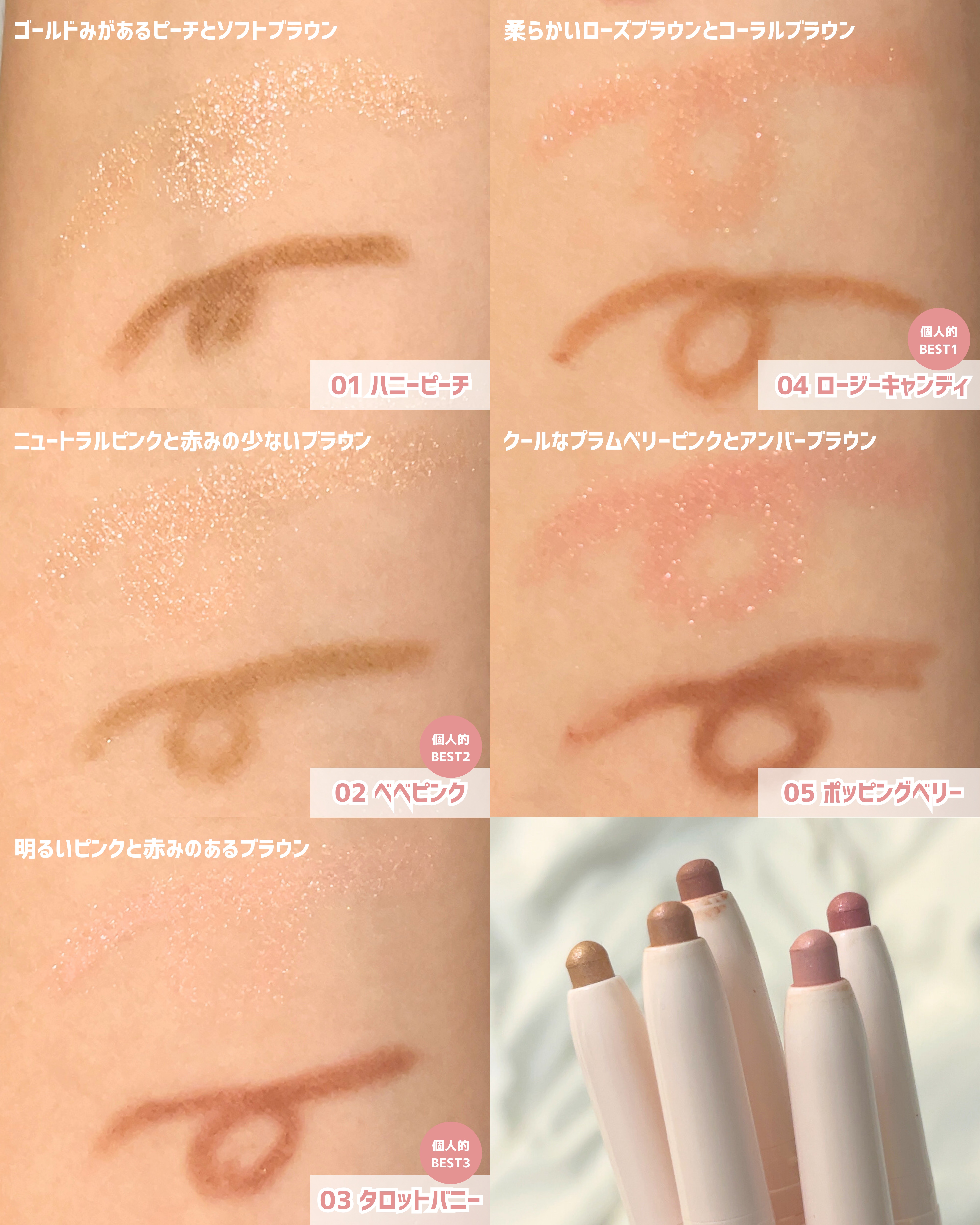 | スティックアイシャドウランキング第6位 | 片方は涙袋の影を自然に描ける細めのシェーディング、もう片方は控えめで上品なハイライト。 | 詳細を見る | ||