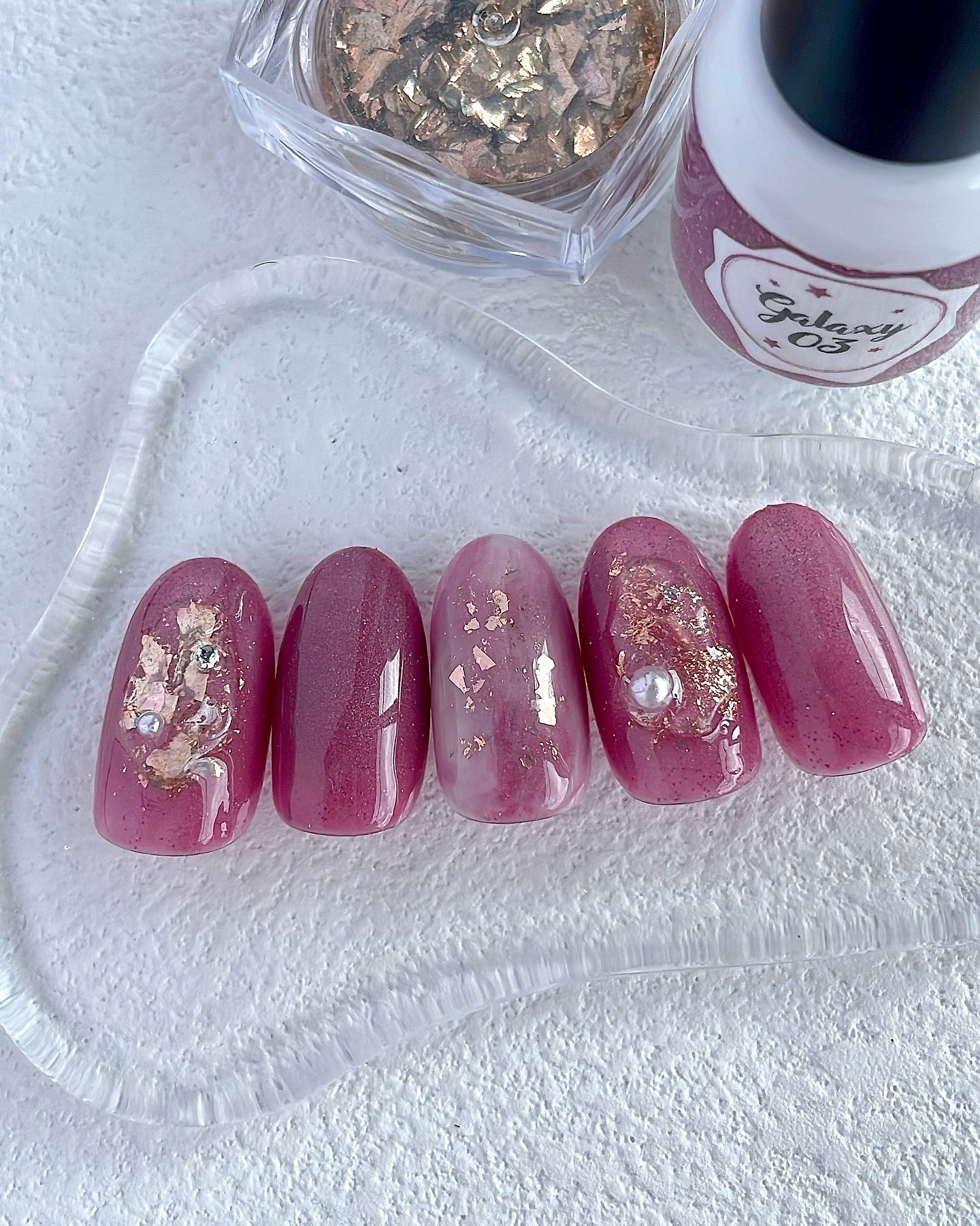 nailholicBE820(親指人差し指小指)nailholicBE302(中指)nailholicGD061(薬指)→薬指にのみユニコーンパウダーを重ねています🦄BE820とBE320は肌馴染みのいいピンクベージュでこの2色を組み合わせる...