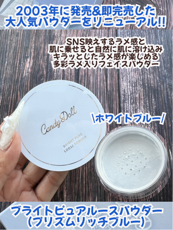 ❤︎@candydoll_officialCANDYDOLLブライトピュアルースパウダープリズムリッチブルートーンアップUVベースブルー2023年のAW時に発売された大人気パウダーがラメ処方にアップデートされました💎.*プリズムリッチブ...