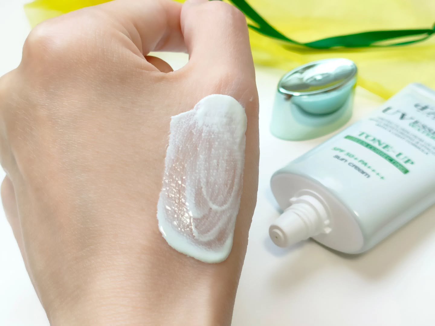 - 日焼けによるしみ、そばかすを防ぐ。 水のようななめらかな使用感。 ムラのない均一トーンに補正する日焼け止めクリーム。 SPF50+ PA++++ 日焼け止めの特有なべたべた感が苦手な方、日焼け止め、下地を一つで解決したい方におすすめです。 赤みの気になる部分へ塗布していただくと、ムラのない均一トーンに。※ 軽いテクスチャーでしっとりとした塗り心地。 ※メイクアップ効果による
