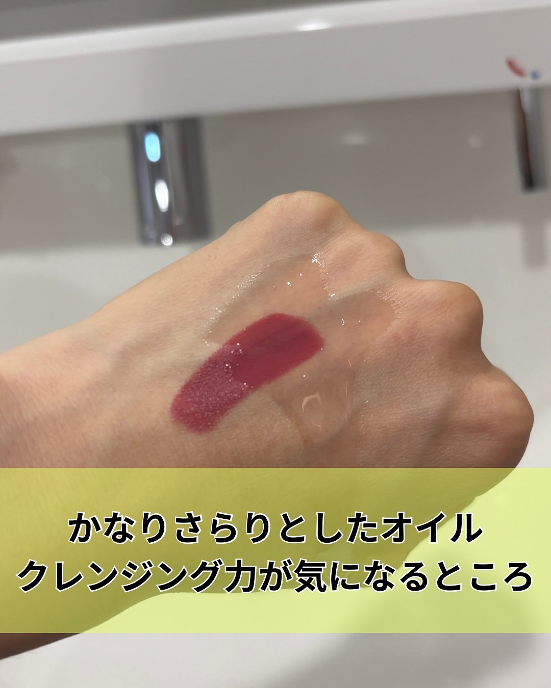 成分はオーガニック系の天然オイルがたくさん配合されていて 申し分のない配合。 もっちりとした感触で、 肌にのせてもしっかりメイクや汚れを絡め取ってくれるような 厚みを感じさせるテクスチャ。 洗い流したあとの肌が... ベタベタ、ねっちり! 全然スッキリ感がない。 オイルの感触と、洗い上がりの独特の重たさ。 あちらは洗顔必須なんだけど。 洗顔しないと確実にニキビできちゃうな... という感じの洗い上がりです。 ちなみにメイク落ちはオイルにしてはマイルドです。 オイルでしっかり落としました!って感じでもないんだよね。 角栓ケアとかしたい方には このもっちり吸着される感じが好評なのかも。 オーガニックオイルが肌に合う!好きだ!って方には きっと相性良いのだろうなぁ..。