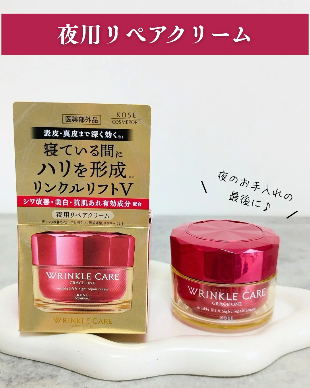 グレイスワンから新発売したナイトクリーム@kosecosmeport_officialグレイスワン リンクルケア リンクルリフトV ナイトリペアクリーム【医薬部外品】ナイトケアって何したらいい?困ってる人必見👀仕上げにこのクリームをプラス➕す...