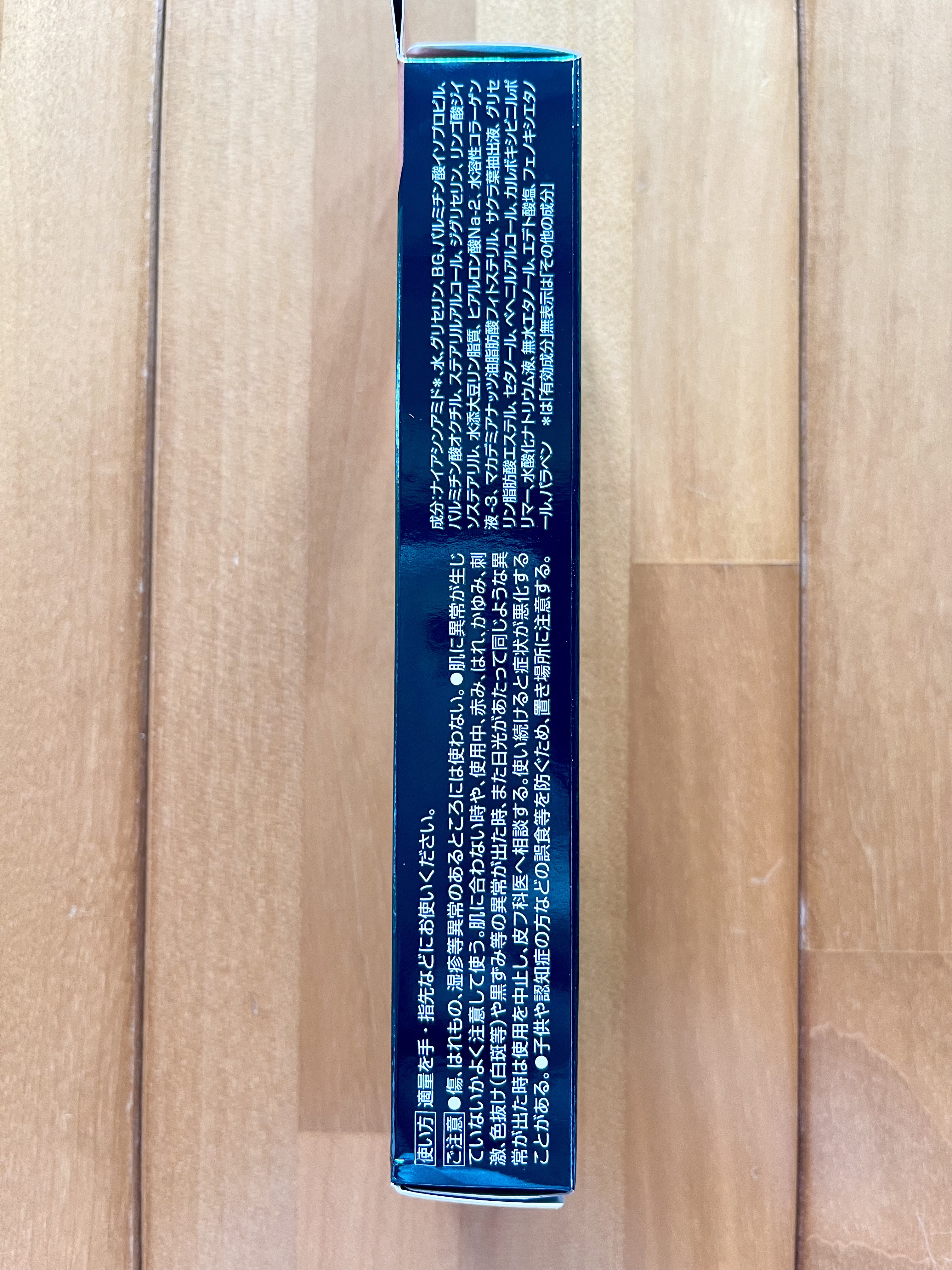 - ナイアシンアミド*、水、グリセリン、BG、パルミチン酸イソプロピル、パルミチン酸オクチル、ステアリルアルコール、ジグリセリン、リンゴ酸ジイソステアリル、水添大豆リン脂質、ヒアルロン酸Na-2、水溶性コラーゲン液-3、マカデミアナッツ油脂肪酸フィトステリル、サクラ葉抽出液、グリセリン脂肪酸エステル、セタノール、ベヘニルアルコール、カルボキシビニルポリマー、水酸化ナトリウム液、無水エタノール、エデト酸塩、フェノキシエタノール、パラベン *は「有効成分」無表示は「その他の成分」