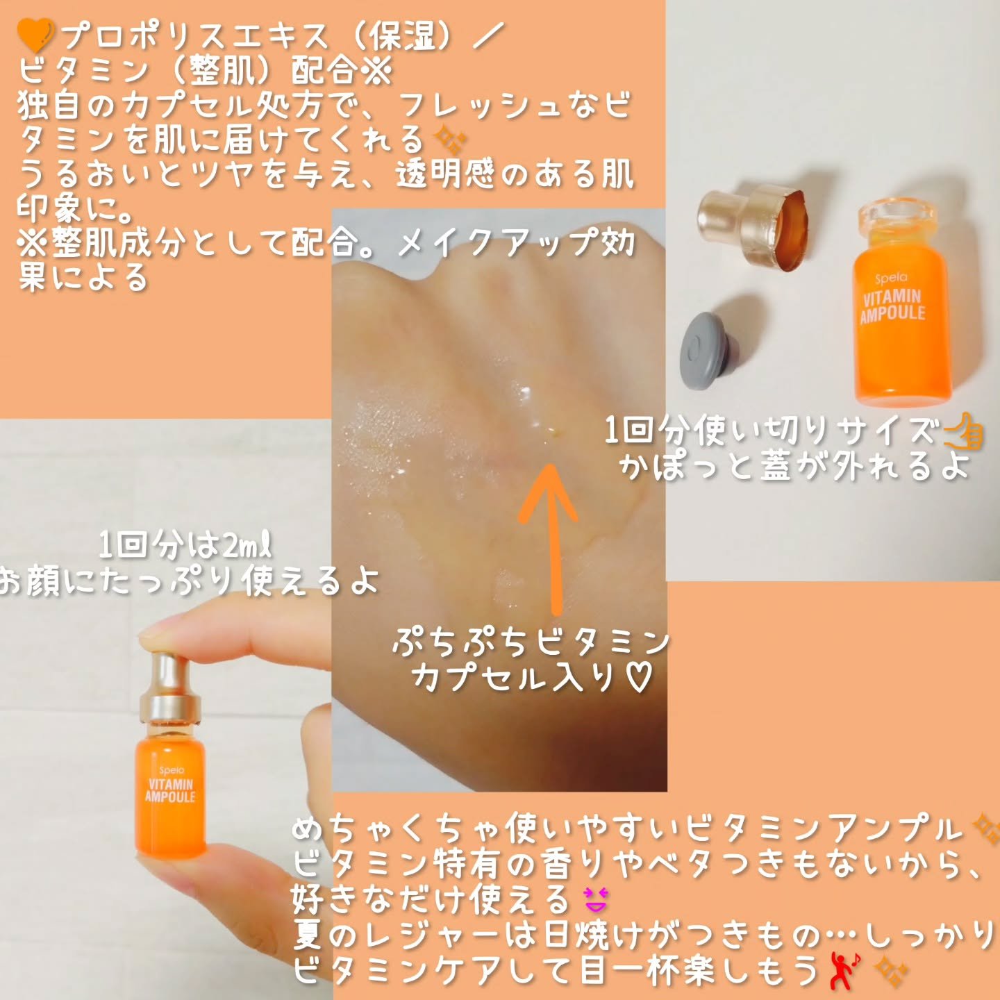 #spela\スペラのビタミンアンプル使ってみた/集中ケアとしても、日々のお手入れの際に美容液としても使える!テクスチャはかなりさらっとしていて、肌なじみ良く、適度にしっとりする感じもありました◎#ビタミンアンプル#スペラ#ビタミン#アンプル...