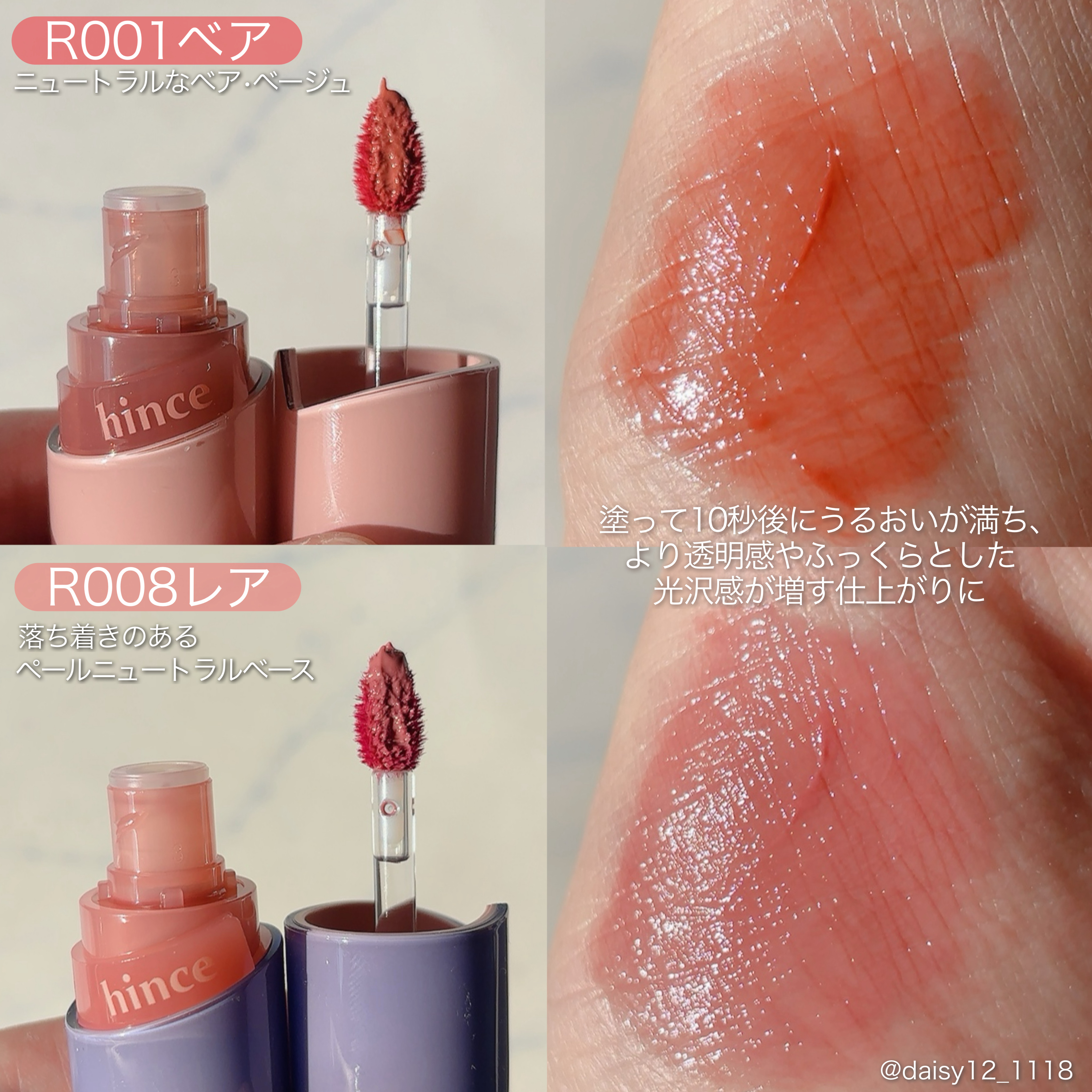 2024年ベスコス17冠受賞したヒンスのティントリップ…! テクスチャーは軽やかなんだけど、唇の上ではむっちりとしていてフィット感も高め☝️ 塗布後すぐにンパンパせず、10秒待つとより透明感あるカラーと光沢感を楽しめるとのこと🌟