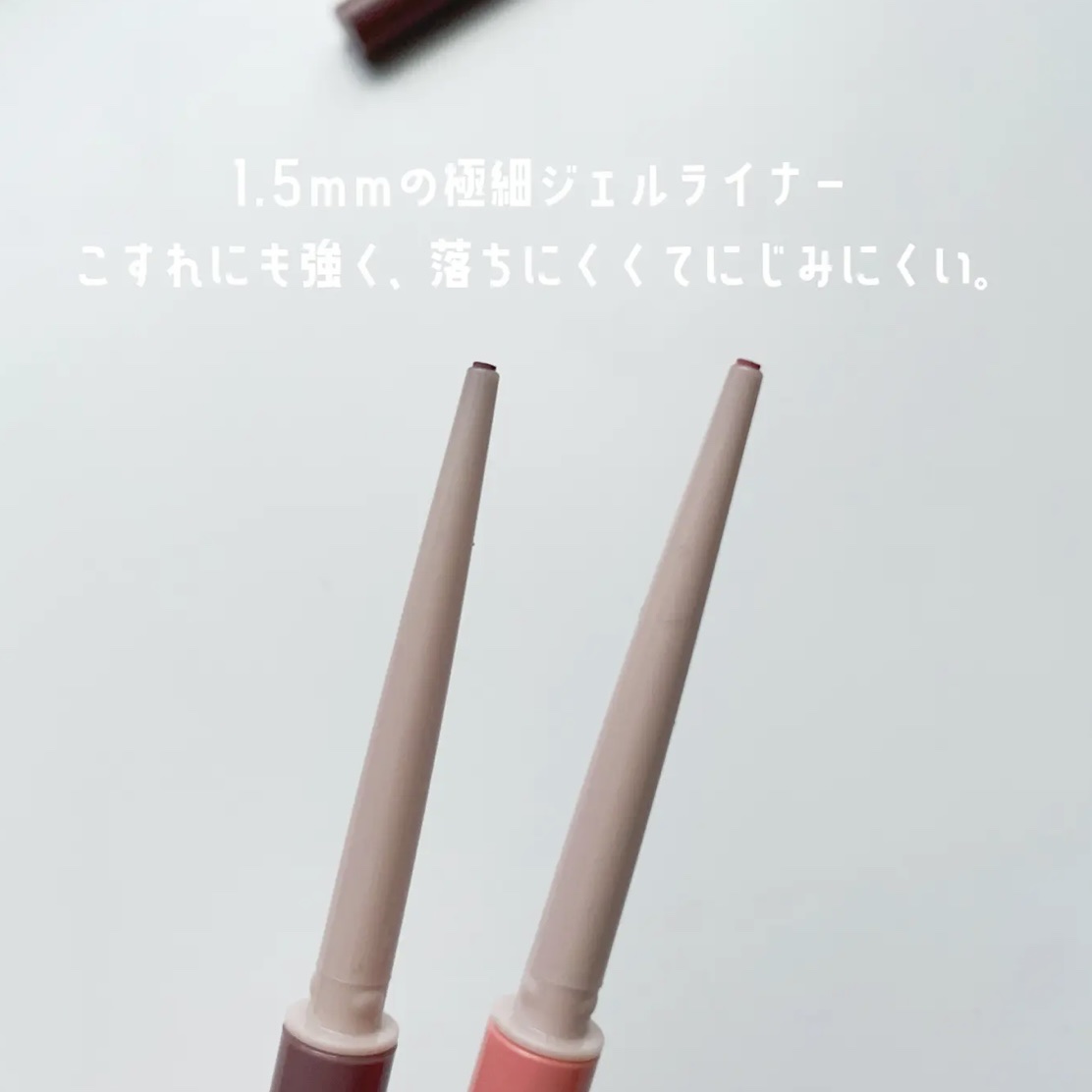 - 2024.6月下旬~ 容器デザインが順次リニューアル 尚、これにかかる商品の返品・交換は承っておりません。 とろける描き心地がたまらない! 1.5mmの超極細ジェルアイライナー くっきり濃密発色!キレイなラインが長続き。 1.5mmの超極細芯で、まつげのすき間埋めもラクラク♪ くり出しタイプなので使いやすい! 一度乾いて密着すれば、とにかく落ちにくい!