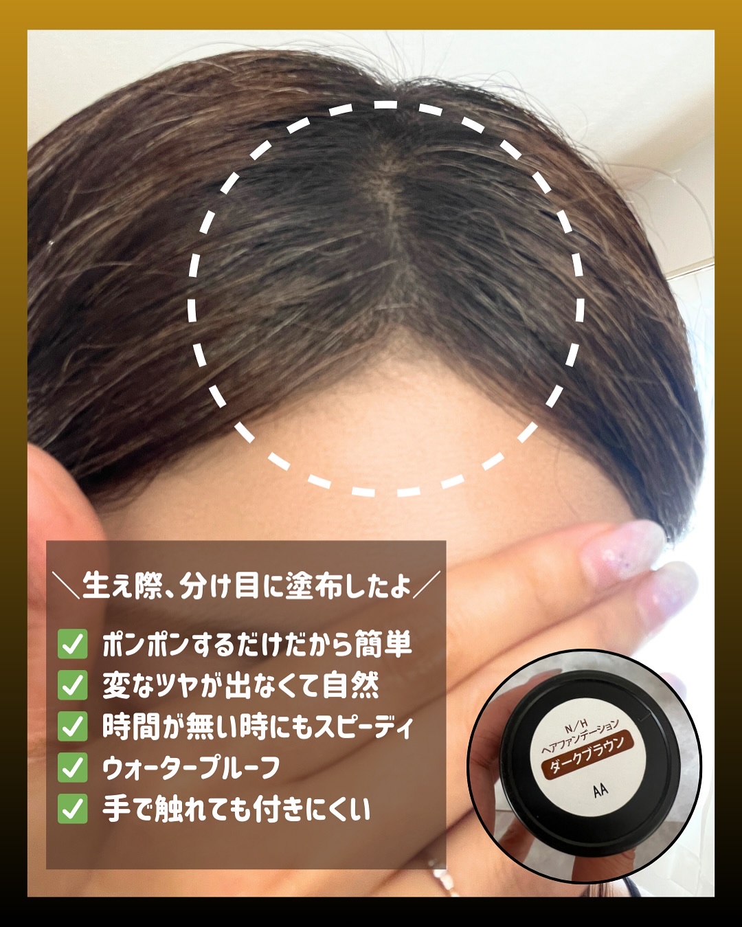 マジカルアクアヘアファンデーションを使ってみました♥️せっかく染めてもすぐに目立ってきてしまう分け目や生え際のちらほら白髪ありますよね👩🦳💦そんな所に限って白髪隠しが塗りづらいというツライ悩みを解決する新発想の白髪隠しがこの「マジカルアクア...